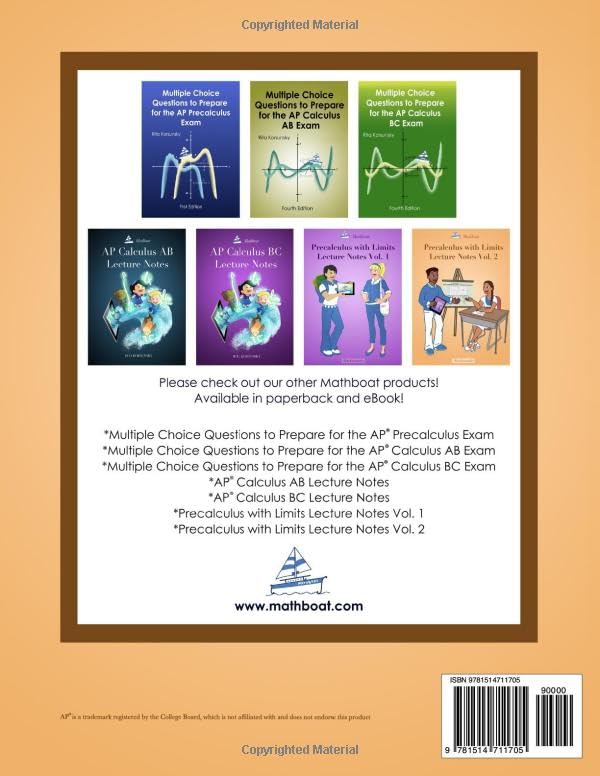 This book contains slides printouts of 53 Powerpoint presentations on topics covered by the second half of Pre-Calculus and SAT courses, with six slides per page. You can take notes on this book, study from it, and use it as test preparation material for chapter tests as well as for the SAT test. These lecture notes can be used for both review and learning, and are a perfect fit for every student no matter their current knowledge of Pre-Calculus. Before you begin practicing with multiple-choice problems from the SAT book, you need to get a confident understanding of the material. This book is intended to help you do that. Every example and every lesson targets a specific skill or formula. With this book, you will have every concept you need to know at the tip of your fingers. Our books are written by Mrs. Rita Korsunsky, a High School Mathematics Teacher with many years of experience teaching Pre-Calculus and AP Calculus. Her lectures are rigorous, entertaining, and effective. My Pre-Calculus students ask me every year what the best time is to take the SAT, and I always tell them “June, after we are done with the whole year of our Pre-Calculus course.” A lot of my students who take the SAT after they are successfully done with this Pre-Calculus course get the perfect score of 800 on their SATs. For more information and testimonials please visit www.mathboat.com