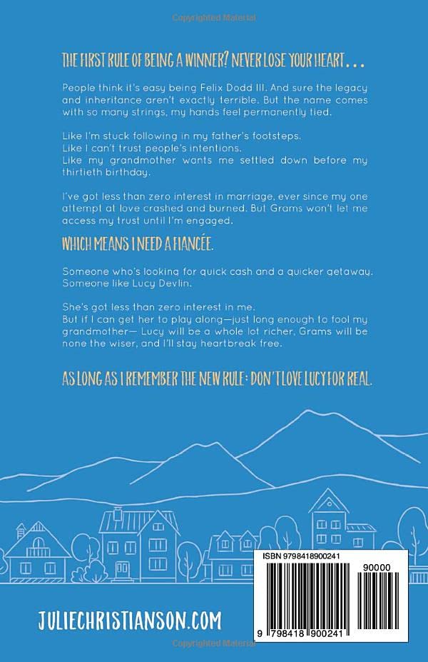 The first rule of being a winner? Never lose your heart … People think it’s easy being Felix Dodd III. And sure the fortune, legacy, and inheritance aren’t exactly terrible. But the name comes with so many strings, my hands feel permanently tied. Like I’m stuck following in my father’s footsteps. Like I can’t trust people’s intentions. Like my grandmother wants me settled down before my thirtieth birthday. I’ve got less than zero interest in marriage, ever since my one attempt at love crashed and burned. But Grams won’t let me access my trust until I’m engaged. Which means I need a fiancee. Someone who’s looking for quick cash and a quicker getaway. Someone like Lucy Devlin. She’s got less than zero interest in me. But if I can get her to play along–just long enough to fool my grandmother–Lucy will be a whole lot richer, Grams will be none the wiser, and I’ll stay heartbreak free. Just as long as I remember the new rule: Don’t love Lucy for real.