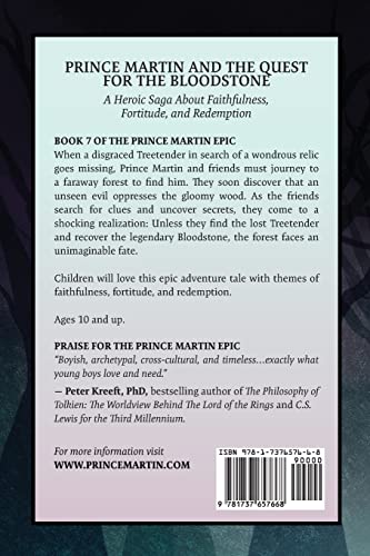 A legendary gem. A perilous quest. A hero forged in fire. In Prince Martin and the Quest for the Bloodstone, the young prince faces his greatest challenge yet. With danger at every turn, he must rely on courage, wisdom, and friendship to complete his mission. A gripping, rhyming adventure for ages 6-10! Read as a stand-alone or as Book 7 in the series. Standard grayscale art paperback edition. Looking for the premium full-color art paperback edition? Search ISBN 9781737657675 Buy your copy now because your son will grow in virtue–and his heart will soar…