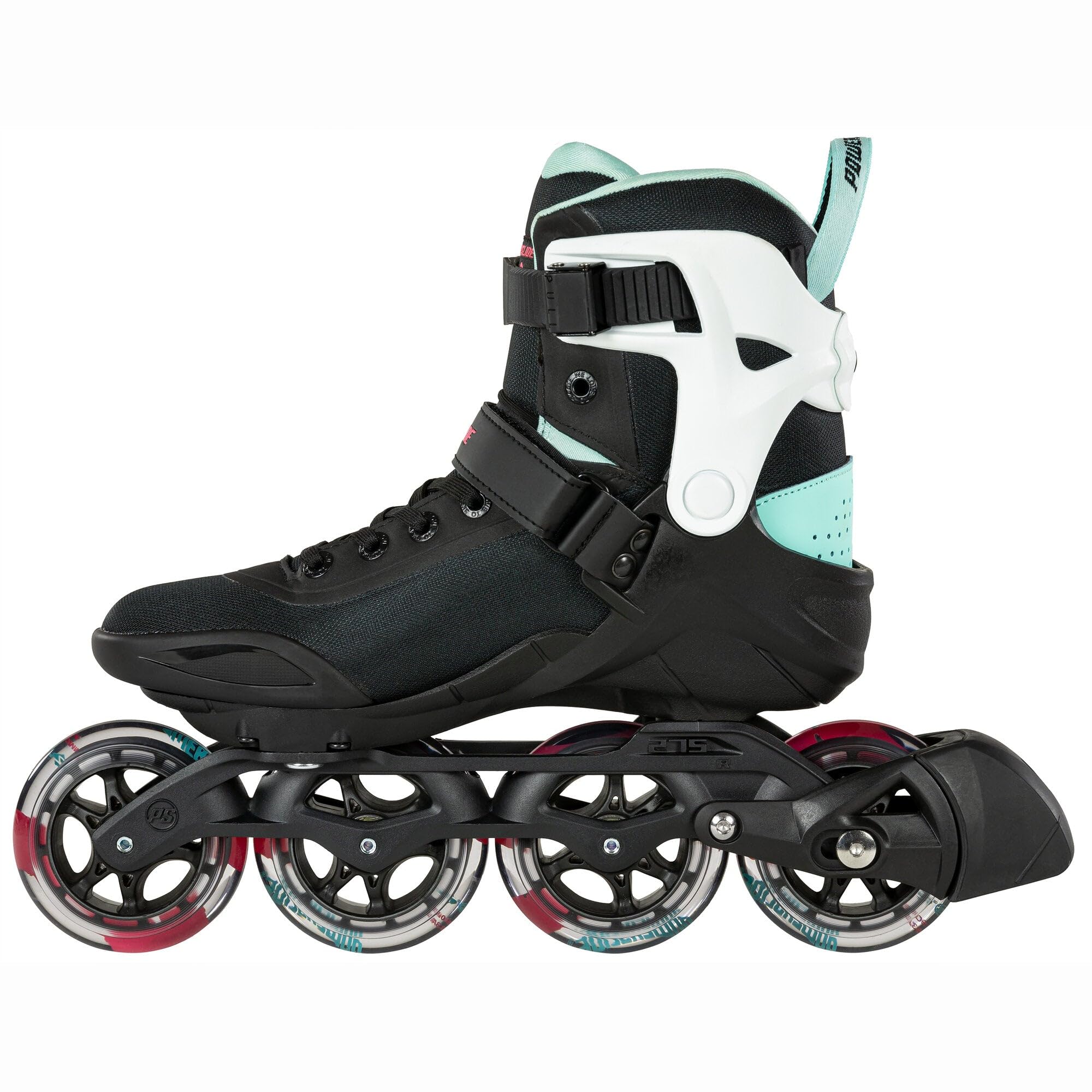 The Powerslide Phuzion Radon 90 skate is the pinnacle of comfortable performance. Constructed using a glass-fiber reinforced strong and stiff outer shell and cuff and combined with the TRINITY X mounting system it provides an amazing stable platform that improves power transfer, reduces vibrations and creates a super low center of gravity for more and better balance. The new Powerknit upper mit TPU welded reinforcements ensures a snug and supportive fit. Powerslides Elite casted aluminum 4×90 – 271mm frame is light weight and stiff. A super comfortable fixed liner with dual density foams and an additional heel lock keeps you skating all day long. This skate is agile, nicely rolling with its 90mm Powerslide Infinity and Wicked ABEC 7 bearings. Moreover it includes the Powerslide HABS braking system. Phuzion: Comfortable Performance.