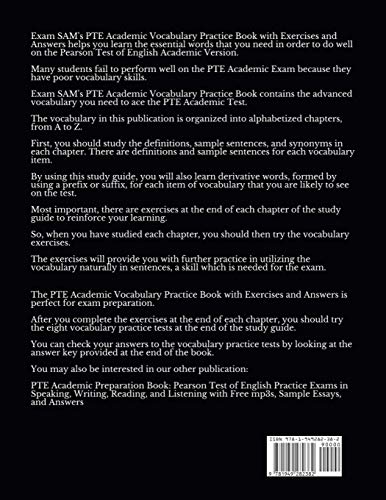 PTE Academic Vocabulary Practice Book with Exercises and Answers: Review of Advanced Vocabulary for the Speaking, Writing, Reading, and Listening … (Exam SAM’s PTE Academic Study Guide Series)