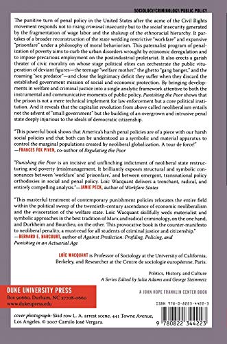 The punitive turn of penal policy in the United States after the acme of the Civil Rights movement responds not to rising criminal insecurity but to the social insecurity spawned by the fragmentation of wage labor and the shakeup of the ethnoracial hierarchy. It partakes of a broader reconstruction of the state wedding restrictive “workfare” and expansive “prisonfare” under a philosophy of moral behaviorism. This paternalist program of penalization of poverty aims to curb the urban disorders wrought by economic deregulation and to impose precarious employment on the postindustrial proletariat. It also erects a garish theater of civic morality on whose stage political elites can orchestrate the public vituperation of deviant figures–the teenage “welfare mother,” the ghetto “street thug,” and the roaming “sex predator”–and close the legitimacy deficit they suffer when they discard the established government mission of social and economic protection. By bringing developments in welfare and criminal justice into a single analytic framework attentive to both the instrumental and communicative moments of public policy, Punishing the Poor shows that the prison is not a mere technical implement for law enforcement but a core political institution. And it reveals that the capitalist revolution from above called neoliberalism entails not the advent of “small government” but the building of an overgrown and intrusive penal state deeply injurious to the ideals of democratic citizenship. Visit the author’s website.