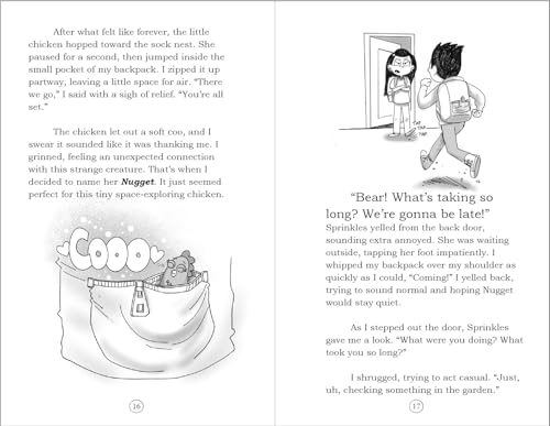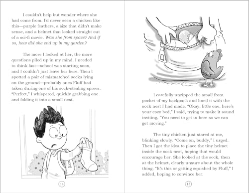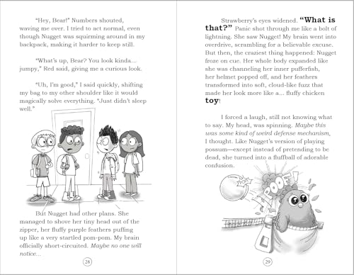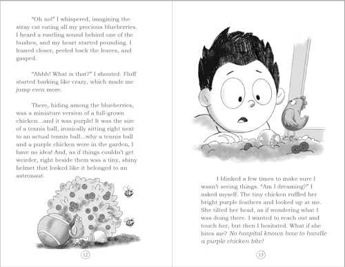 What would you do if you found a tiny purple space chicken? Kids who love funny adventures and top secret missions will love the first book in the Purple Space Chicken series–a hilarious chapter book adventure about a boy named Bear and his crazy life with a magical creature! Bear’s life was pretty normal–until he found a purple chicken from outer space hiding in one of the bushes in his backyard. Now he’s just trying to survive school with a teleporting chicken named Nugget–and solve the mystery behind her glowing bracelet and her ability to turn into a stuffed toy whenever she needs to stay hidden. But the clock is ticking. Nugget was sent to Earth for a reason, and now it’s up to Bear and his sister to figure out why before it’s too late! Full of laughs, wild adventures, and intergalactic surprises, Purple Space Chicken is a hilarious new adventure that will leave readers wishing for a space chicken of their own. Perfect for reluctant and avid readers ages 7-12, this funny chapter book is great for reading at home or adding to a classroom library! Recommended for: Kids in third, fourth, fifth, and sixth grade Readers who enjoy illustrated chapter books and illustrated middle grade books Ages 7-12