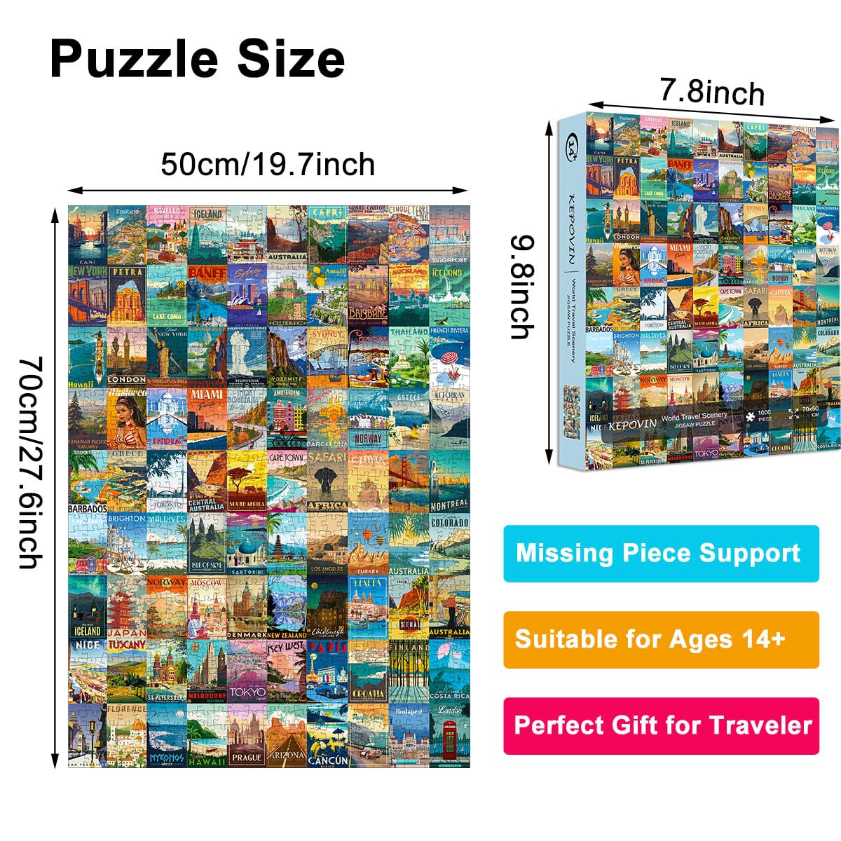 1000 Piece Puzzle for Adults Travel: Vintage travel jigsaw puzzles 1000 pieces with exquisite packing box and a same-size poster. The poster helps you complete the puzzles.Finished size: 27.6 x 19.7 inches