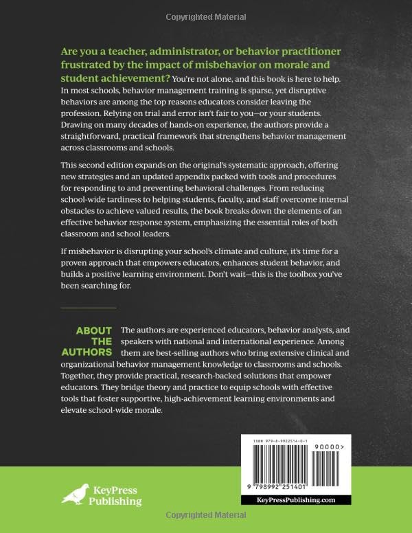 Are you a teacher, administrator, or behavior analyst frustrated by the impact of misbehavior on morale and student achievement? You’re not alone, and this book is here to help. In most schools, behavior management training is sparse, yet disruptive behaviors are among the top reasons educators consider leaving the profession. Relying on trial and error isn’t fair to you–or your students. Drawing on many decades of hands-on experience, the authors provide a straightforward, practical framework that strengthens behavior management across classrooms and schools. This second edition expands on the original’s systematic approach, offering new strategies and an updated appendix packed with tools and procedures for responding to and preventing behavioral challenges. From reducing school-wide tardiness to helping students, faculty, and staff overcome internal obstacles to achieve valued results, the book breaks down the elements of an effective behavior response system, emphasizing the essential roles of both classroom and school leaders. If misbehavior is disrupting your school’s climate and culture, it’s time for a proven approach that empowers educators, enhances student behavior, and builds a positive learning environment. Don’t wait–this is the toolbox you’ve been searching for.