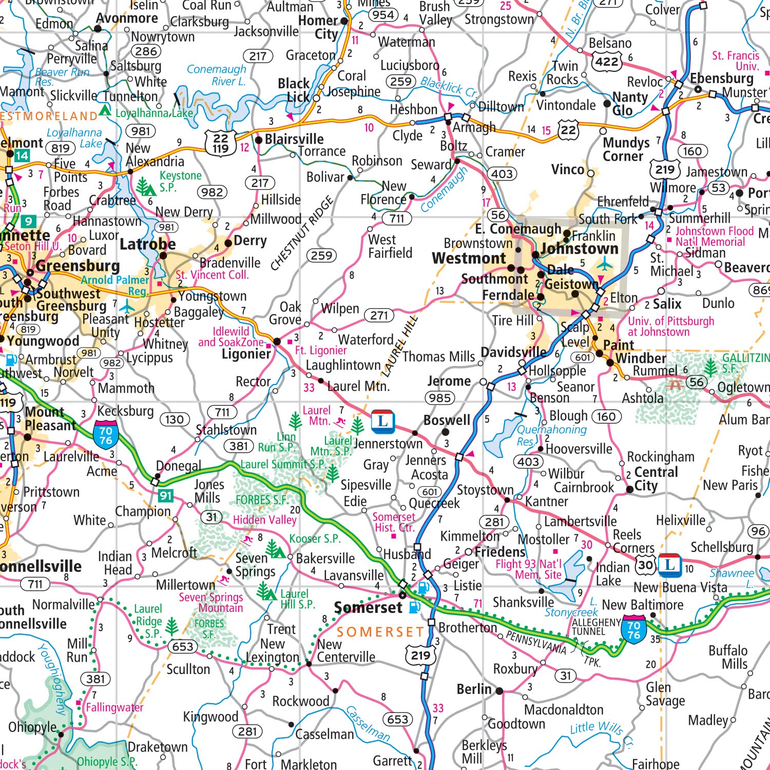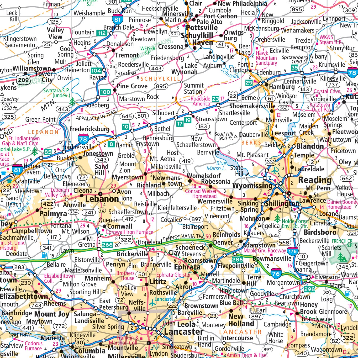 This laminated map of Pennsylvania helps students learn state geography, cartography, and navigation skills.