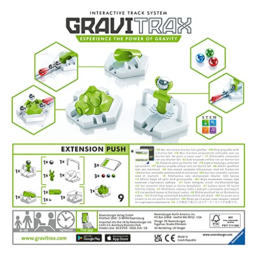 - The GraviTrax extension push is an optimal addition to the interactive marble run system