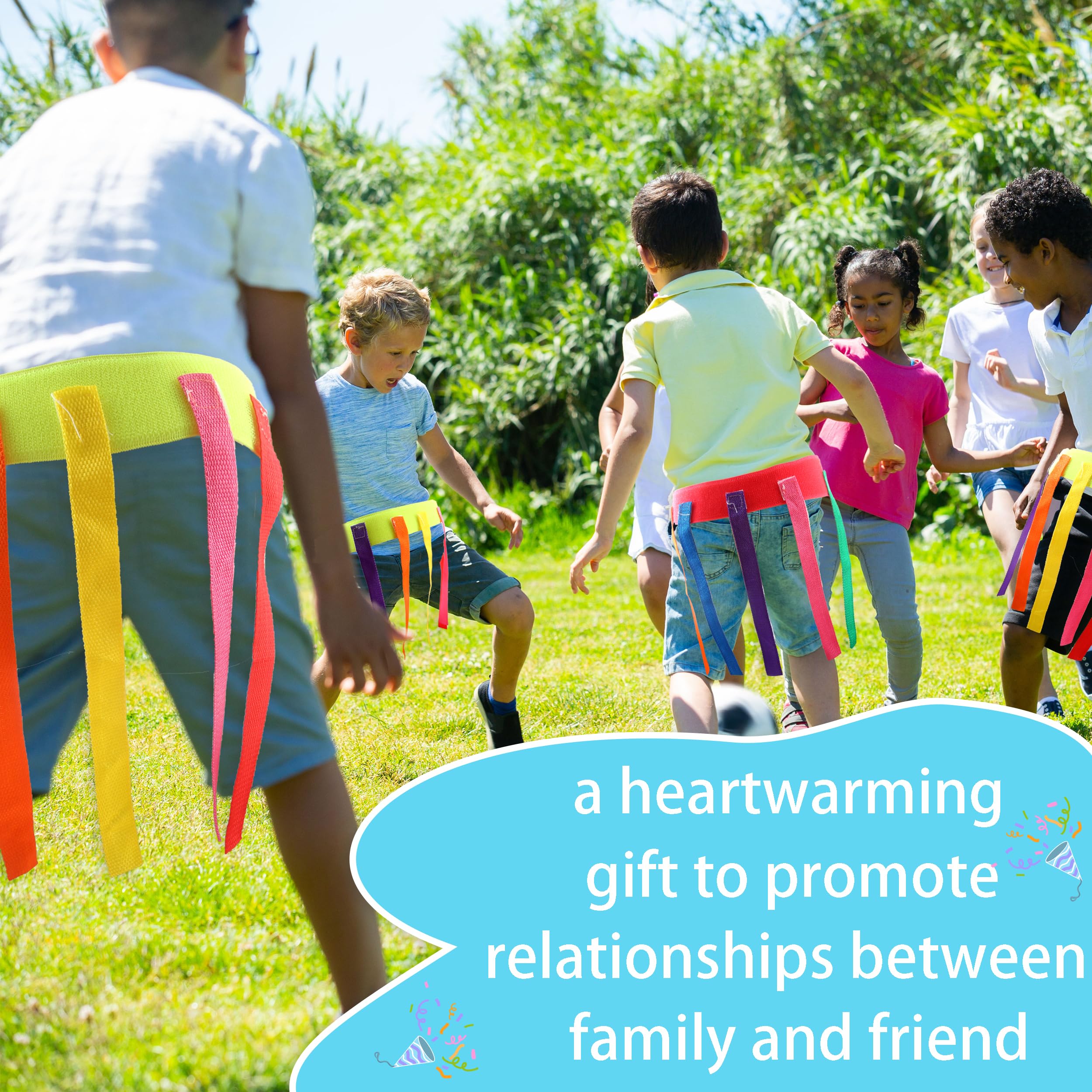 - Fun Game: this catch tail game belt is the perfect way to have fun with family and friends. It features a flexible waistband that fits waistlines from 12-40 inches, and comes with 6 ribbons in different colors. The game is simple: grab the other players’ ribbons while protecting your own, but it is truly fun if you play with 3 or more players