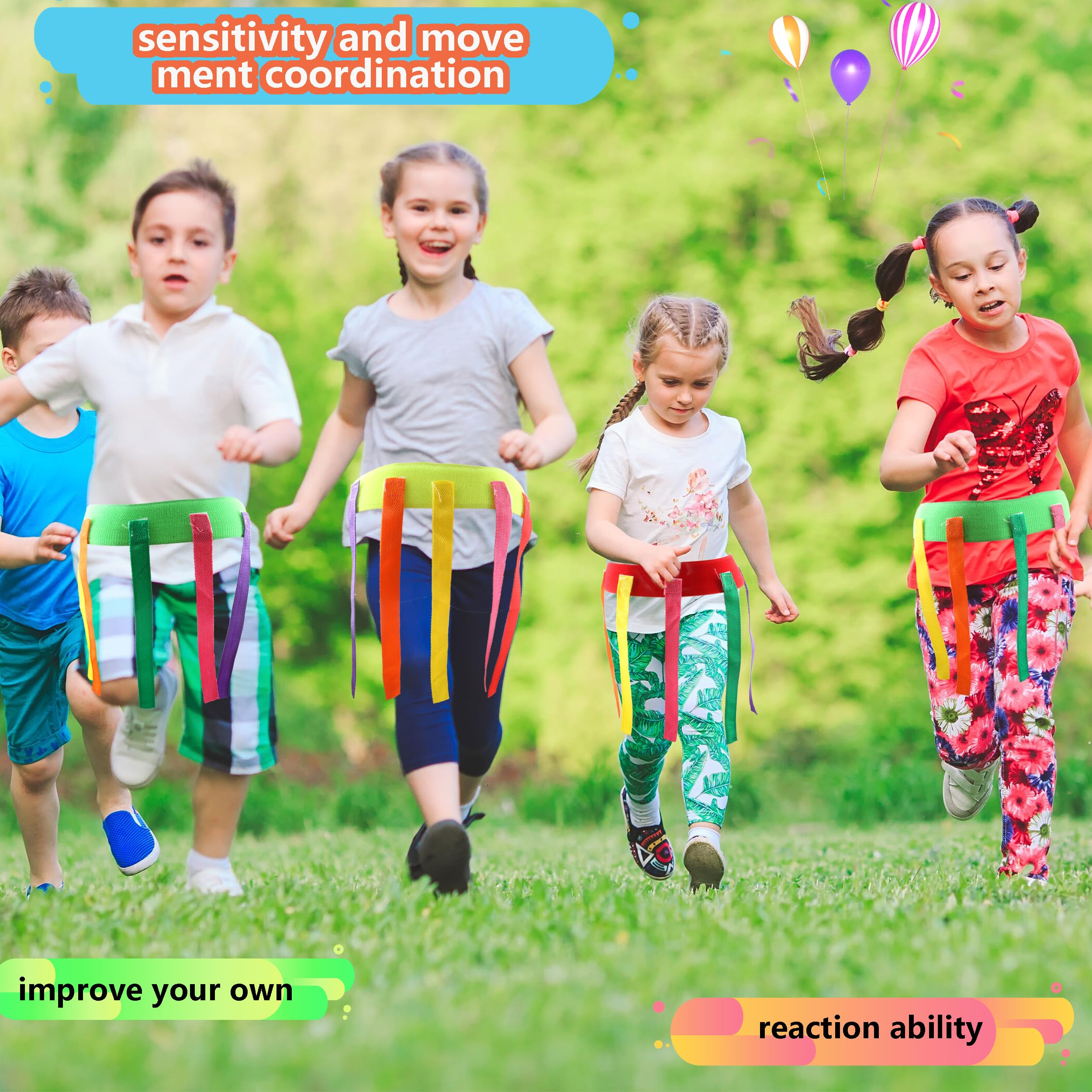 Description Rcanedny 12 Pcs Catch Tail Game Belt Field Day Games Carnival Yard Outdoor Games for Kids Adults Field Day Camping Picnic Family Birthday Outdoor Activities Wide application: the catch tail game belt is perfect for any occasion! This fun game belt is suitable for yard, wilderness, family reunion games, Thanksgiving, lawn games, sports days, carnivals, Easter party, camping, children’s parks and more. The game belt is easy to use and suitable for both adults and children. It’s a great gift for any occasion and will bring hours of fun and laughter Specification: Material: Polyester, Iron Color: Belts: Red, Yellow, Green, Orange, Pink, Blue Ribbons: Random Color Quantity: 84 pieces Package include: 12 x Catch Tail Game Belt 72 x Ribbons
