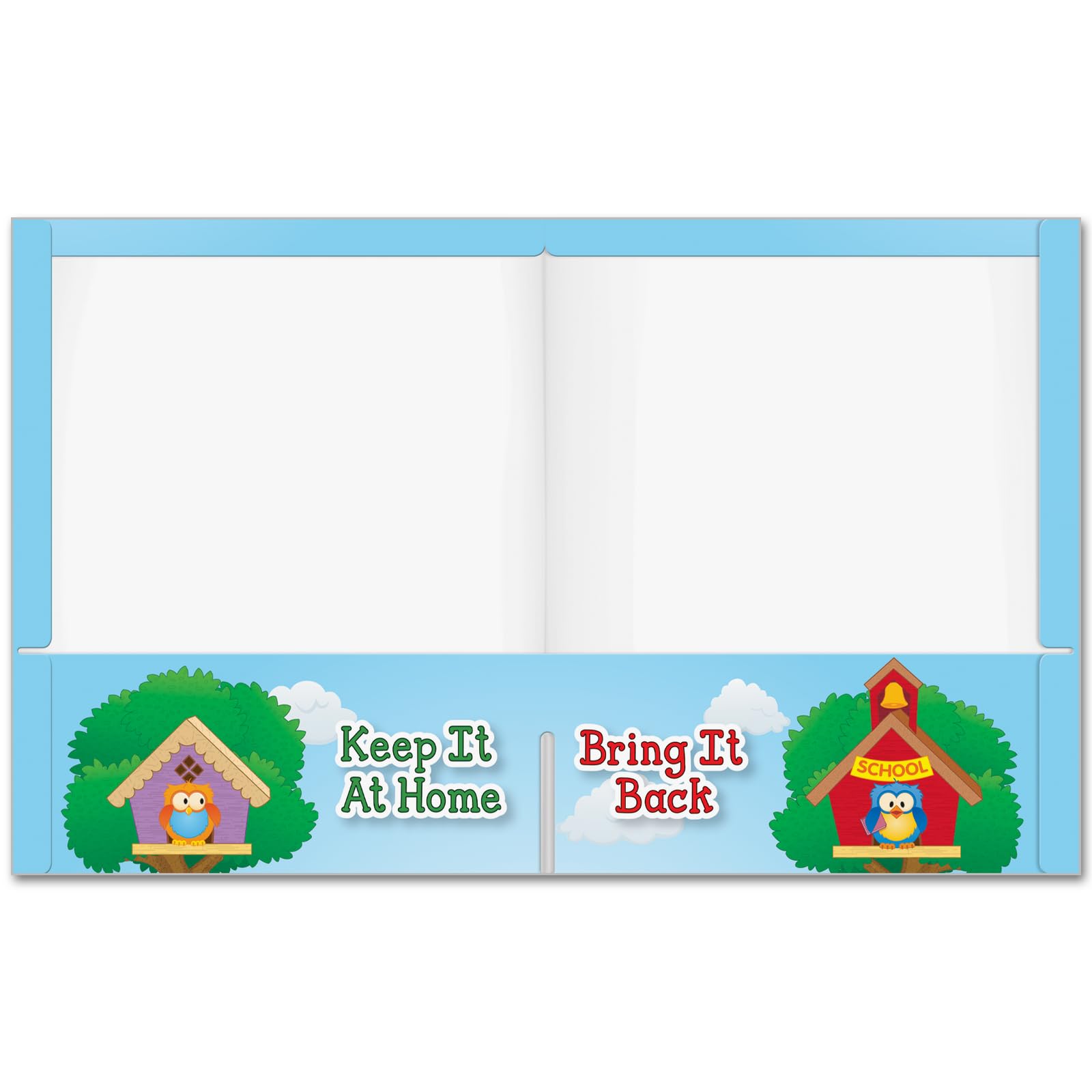 - With pockets labeled Keep It At Home and Bring It Back, this folder helps young students organize their homework and take-home notices.