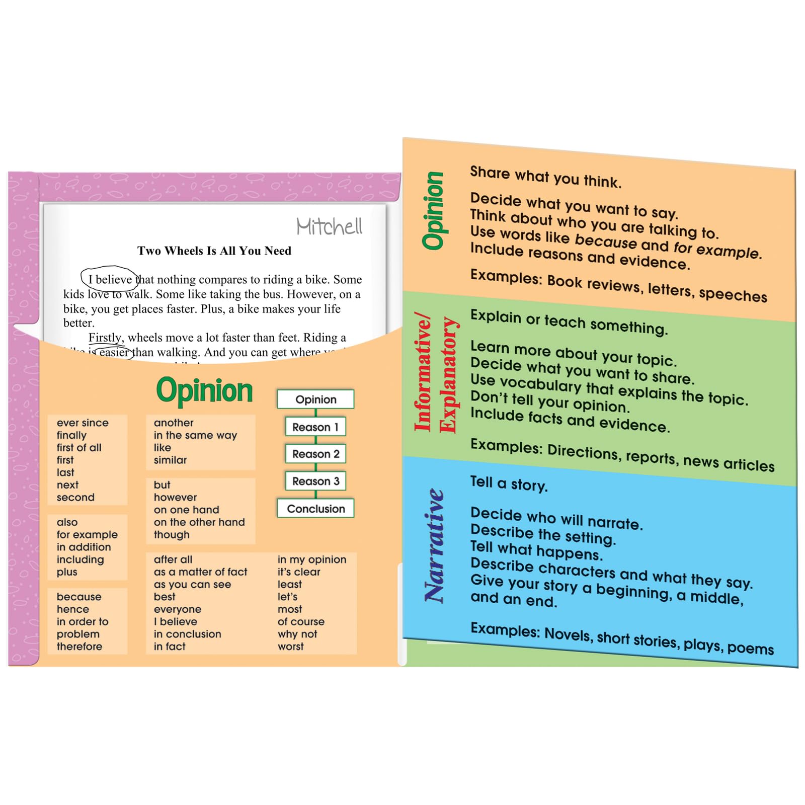 These folders are packed with content, including how to choose your text type, audience, purpose, tone, language, text structure, and signal words. Use as reinforcement for skills learned with our Primary Writing Text Types 4-Poster Set (#307035).