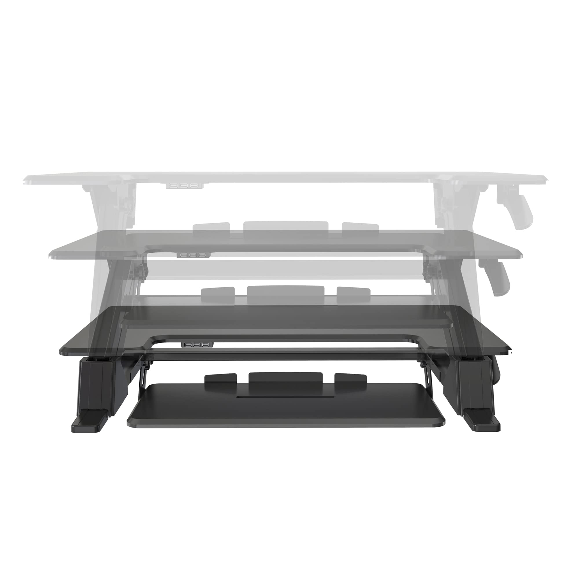 - Place this Realspace Standing Desk Converter on your worktable or desk to transform it into an active workstation. With the pneumatic lift-assist, you can easily transition from sitting to standing and back again, as the riser can move between 5.1″ and 19.3” above your work surface. You’ll also be able to maintain a comfortable typing position because the removable keyboard tray moves in accordance with the top surface. Plus, 3 USB ports are located under the desk surface to allow you to e