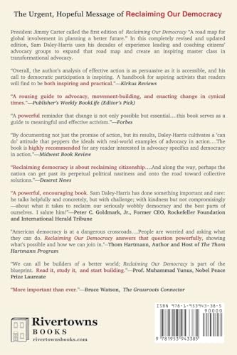 Almost everyone shies away from advocacy as a way to make a difference. We donate to climate change organizations, but we don’t meet with a member of Congress or write a letter to the editor. We donate to groups working to end gun violence, anti-hunger organizations, groups dedicated to racial justice, and many others, but we don’t become advocates on those issues beyond signing an online petition or going to an occasional rally. Why? Because most of us see advocacy as too hard or too frustrating, too complicated, or too partisan, too dirty or too time-consuming, too ineffective or too costly. But what if that’s all wrong? What if deep engagement dissolves discouragement and can actually bring joy? What if you can become an advocate for a cause you care about and feel fulfilled, not frustrated? And what if engaging as an advocate is essential to protecting our democracy? President Jimmy Carter called the first edition of Reclaiming Our Democracy “A road map for global involvement in planning a better future.” In this completely revised and updated 2024 edition, Sam Daley-Harris uses his decades of experience leading and coaching citizens’ advocacy groups to expand that road map and create an indispensable guide to engaged citizenship, an inspiring master class in transformational advocacy. Reclaiming Our Democracy provides a powerful way to make a difference and heal our democracy in the process. It’s not the only solution needed, but is one essential, missing piece: citizens awakening to their power. “Overall, [the author’s] analysis of effective action is as persuasive as it is accessible, and his call to democratic participation is inspiring. A handbook for aspiring activists that readers will find to be both inspiring and practical.”–Kirkus Reviews “[A] rousing guide to advocacy, movement-building, and enacting change in cynical times.”–Publisher’s Weekly BookLife (Editor’s Pick) “By documenting not just the promise of action, but its results, Daley-Harris cultivates a “can do” attitude that peppers the ideals with real-world examples of advocacy in action. . . . The book is highly recommended for any reader interested in advocacy specifics and democracy in action.”–Midwest Book Review “The book makes a strong case for the kind of advocacy that could help good ideas rise on their merits, rather than sinking in a political morass. Certainly, Daley-Harris has the kind of track record that gives his ideas credibility.”–Jay Evensen, Deseret News “Reclaiming Our Democracy is a powerful, encouraging book. Sam Daley-Harris has done something important and rare: he talks helpfully and concretely, but with challenge; with kindness but not compromisingly–about what it takes to reclaim our seriously wobbly democracy and the best parts of ourselves. I salute him!”–Peter C. Goldmark, Jr., Former CEO, Rockefeller Foundation and International Herald Tribune “American democracy is at a dangerous crossroads. People are worried and asking what they can do. Reclaiming Our Democracy answers that question powerfully, showing what’s possible and how we can join in.”–Thom Hartmann, Author and Host of the Thom Hartmann Program “We can all be builders of a better world; Reclaiming Our Democracy is part of the blueprint. Read it, study it, and start building.”–Prof. Muhammad Yunus, Nobel Peace Prize Laureate