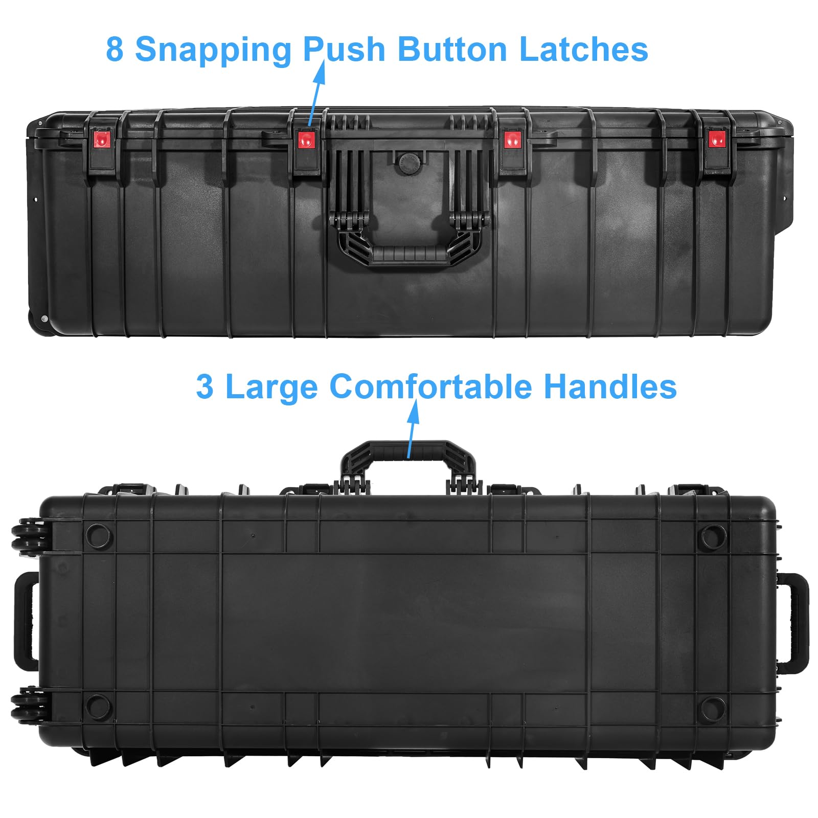 - [(Please check your item size must be less than Interior size 40.43 x 13.93 x 10.82 inch)] Exterior size 44″x 17.5″x 13.5″, Interior size 40.43″ x 13.93″ x 10.82″; Case Weight:18.73 lbs(8.5 kg); Weight with Foam: 25.35 Lbs (11.5 kg).