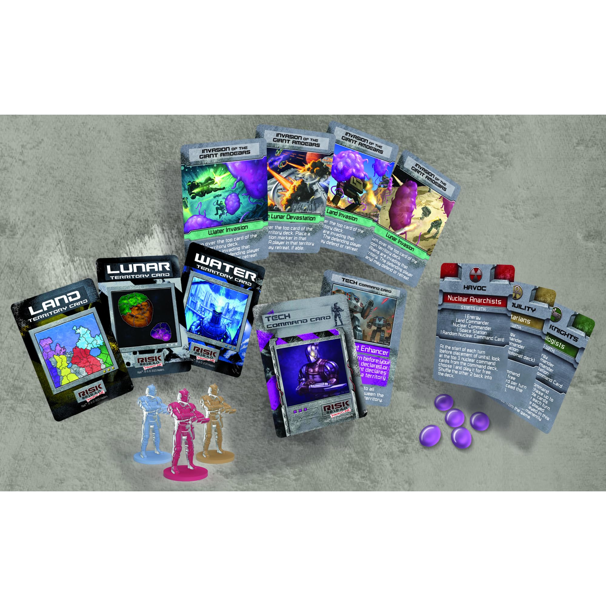 RISK 2210 A.D. FRONTLINE EXPANSION – New developments are happening quickly that will change the face of battle. The battlefront has moved from Earth to a newly terraformed Mars Technology is redefining warfare as each side races to gain an advantage. Faction lines are being drawn to further entrench the sides against each other. And just when we thought it couldn’t get worse giant amoebas enter the fray Risk 2210 A.D. Frontline includes four modules originally offered as Tournament prizes in the Risk Frontline Program in 2003 Each adds unique gameplay elements that explore these new developments. EXPANSION: This is an expansion. Risk 2210 A.D. Is required to play. INCLUDES: 1 Mars Gameboard, 1 Mars Moon Colonies Game Board, 5 Tech Commander Miniatures, 85 Mars Territory Cards, 23 Command Cards, 31 Invasion of the Giant Amoebas Cards, 6 Faction Cards, 20 Giant Amoeba Tokens, 1 Rulebook. AT A GLANCE: For Ages: 10+. Game Type: Strategy Game Expansion. Players: 2-5. Game Length: 240 minutes.
