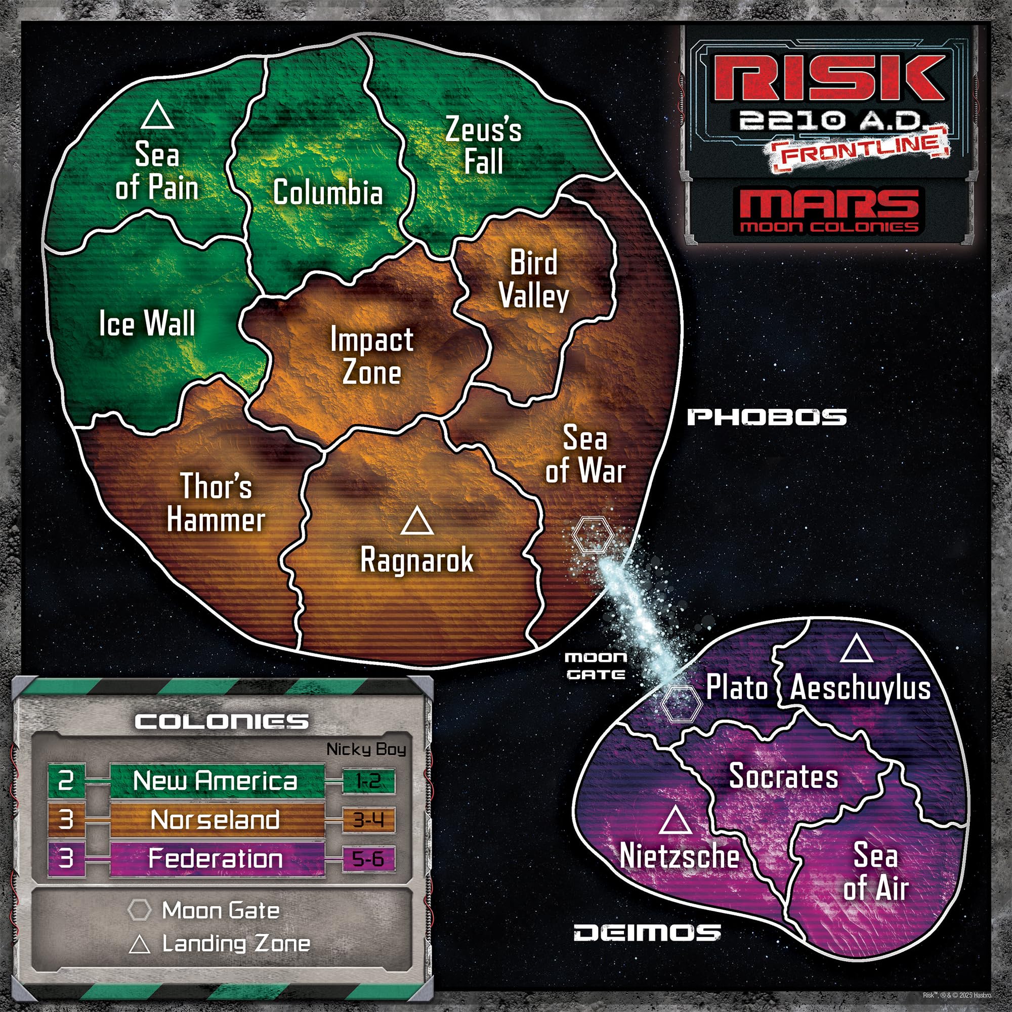 - THE WAR RAGES ON: The first time this compilation of Frontline Tournament prize expansions is available in retail This is an expansion. Risk 2210 A.D. is required to play