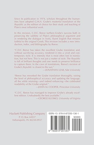 The revised edition of Grube’s classic translation follows and furthers Grube’s noted success in combining fidelity to Plato’s text with natural readability, while reflecting the fruits of new scholarship and insights into Plato’s thought since publication of the first edition in 1974. A new introduction, index, and bibliography by Professor Reeve are included in this new rendering.