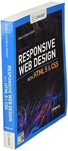 Equipping you with the most up-to-date tools available, Minnick’s RESPONSIVE WEB DESIGN WITH HTML 5 & CSS, 9th edition, teaches you step by step how to design professional quality websites that attract and retain customers. Packed with best practices and tips from the pros, the text gives you a solid foundation in HTML, CSS and responsive web design. It shows you how to create one website that automatically adapts to mobile, tablet, laptop and desktop devices as well as large monitors. You will learn how to code a webpage to make a phone call from a mobile device, embed a map, use custom fonts, create shortcut navigation menus, integrate social media to promote a business and more. In addition, you will use popular web framework Bootstrap to create a webpage. Also available: MindTap digital learning solution.