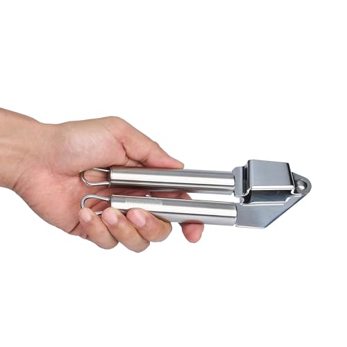 - STAINLESS STEEL LONGEVITY: Made from stainless steel, this garlic crusher is durable and can withstand the rigors of daily use. Dishwashable for an efficient cleaning experience!