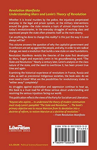 Whether it is brutal murders by the police, the injustices perpetrated everyday in the legal and prison system, or the military interventions around the globe–the state remains a topic of utmost importance for today’s revolutionaries. In the everyday struggles of working class and oppressed people the state often presents itself as the main enemy. Can anything be done to change this reality? Is this just the way it is and always will be?This volume answers the question of why the capitalist government and its enforcers are set up against the people, and why, in order to win radical change, we need a revolution that builds a new state on new foundations. Revolution Manifesto revisits the theories of the state first developed by Marx, Engels and especially Lenin in his groundbreaking work “The State and Revolution.” Nearly a century later, Lenin’s analysis on the class nature of the state, and the need to overthrow it, has been proven true time and again. Examining the historical experience of revolutions in France, Russia and Cuba, as well as precolonial Indigenous societies, the book asks: do we even need a state? What are the possibilities for revolutionary states to “wither away” completely?As struggles against exploitation and oppression continue to heat up, this book is a must read for all those serious about understanding and resolving the serious injustices facing our world. This publication reflects the views of the Party for Socialism and Liberation.”Anyone who aspires … to understand the theory of modern communism must study Lenin’s pamphlet “The State and Revolution.” … The book’s primary objective was to rescue Marxism from its devolution into a doctrine of reform, to restore Marxism as a doctrine of revolution.”–From Revolution Manifesto