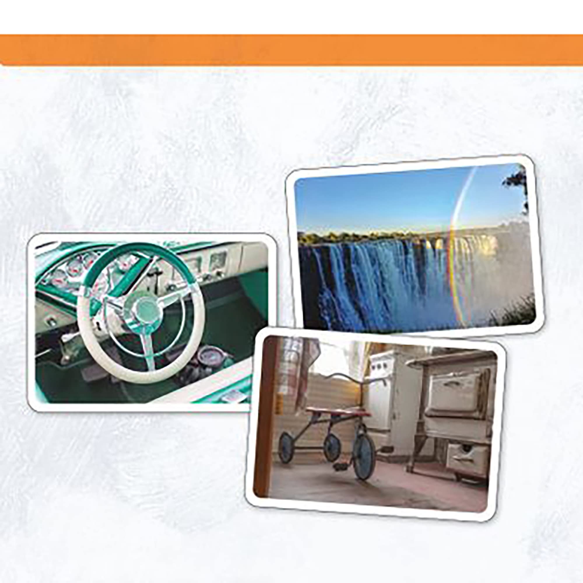 - Components – 81 Pieces. Including: 55 photo cards, 1 note pad, 5 clothespins, 2 felt pieces, 16 acrylic tiles, 1 frame, 1 game rules.