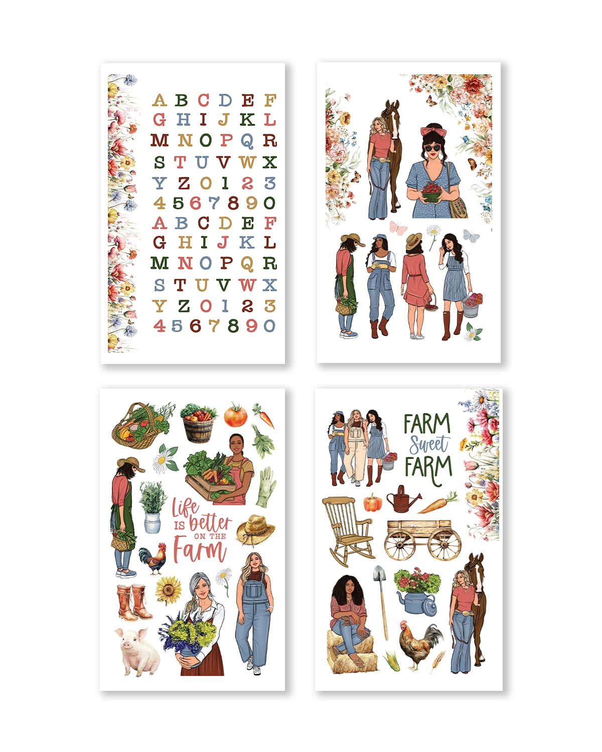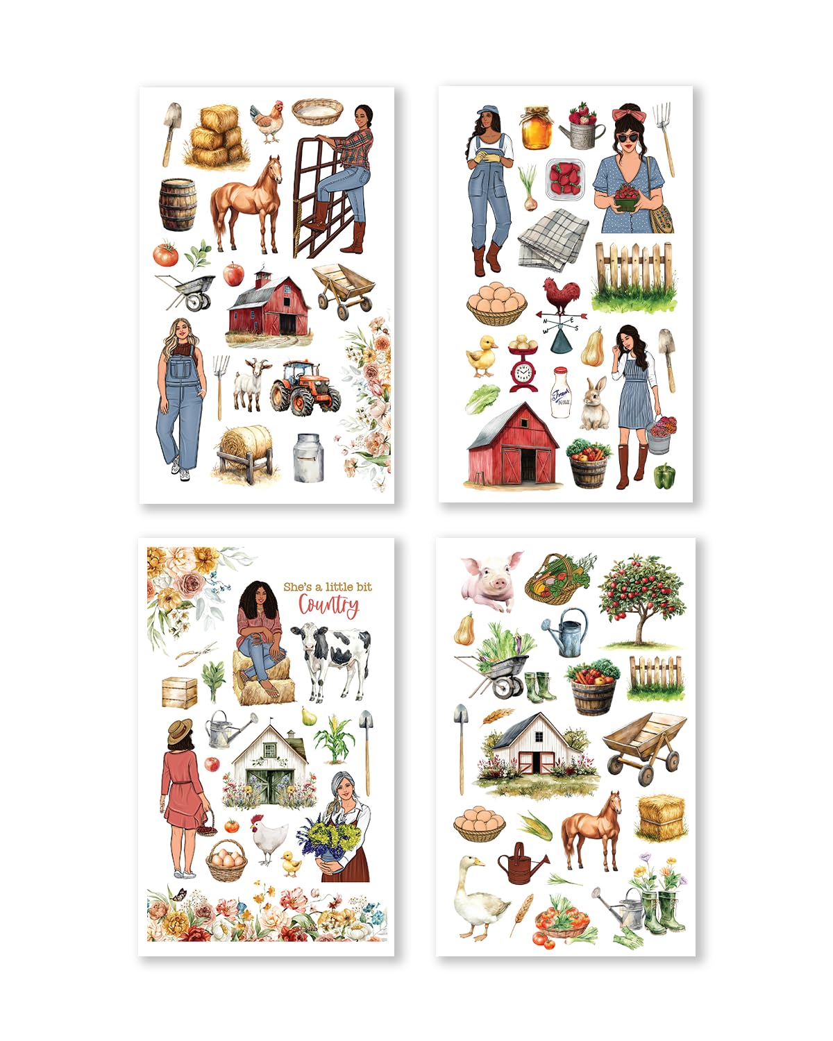 - Rustic and Cozy Designs: Each page is filled with hand-illustrated stickers showcasing farm-fresh produce, wildflowers, vintage trucks, and country animals. These beautifully detailed designs bring a touch of the countryside to your planner, scrapbook, or journal.
