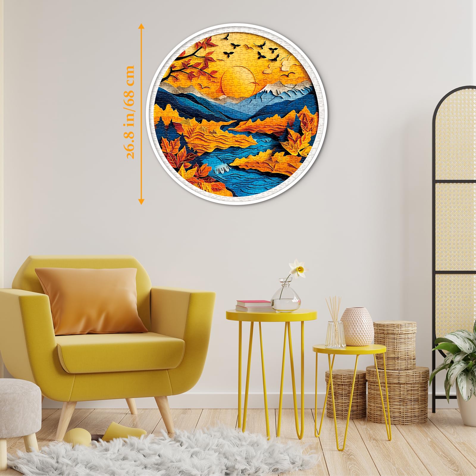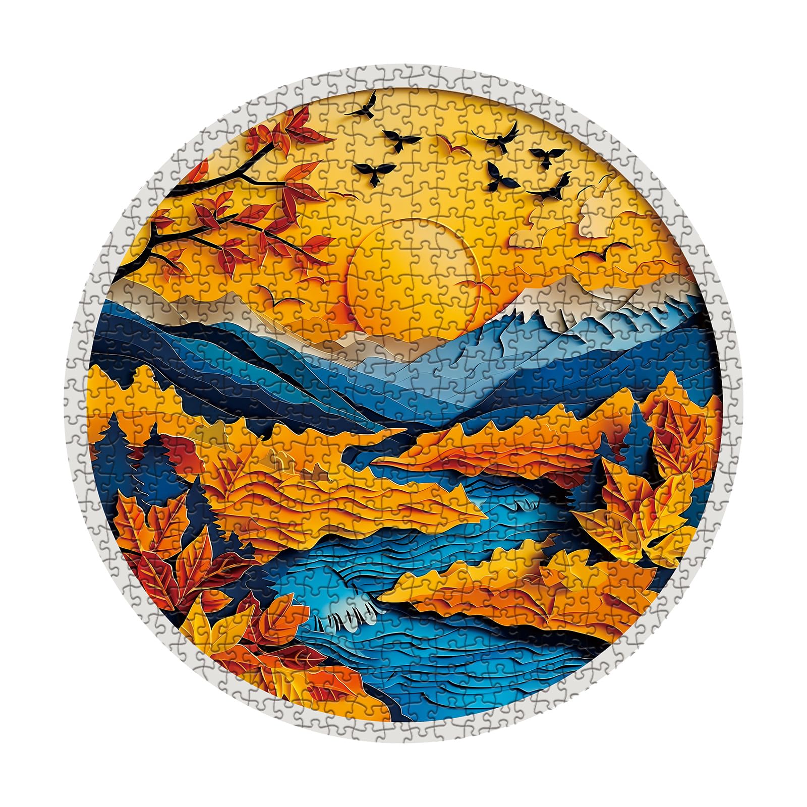 Round Landscape Puzzle for Adults 1000 Pieces, Pretty Autumn Jigsaw Puzzle, Bird Fall Puzzle Scenery