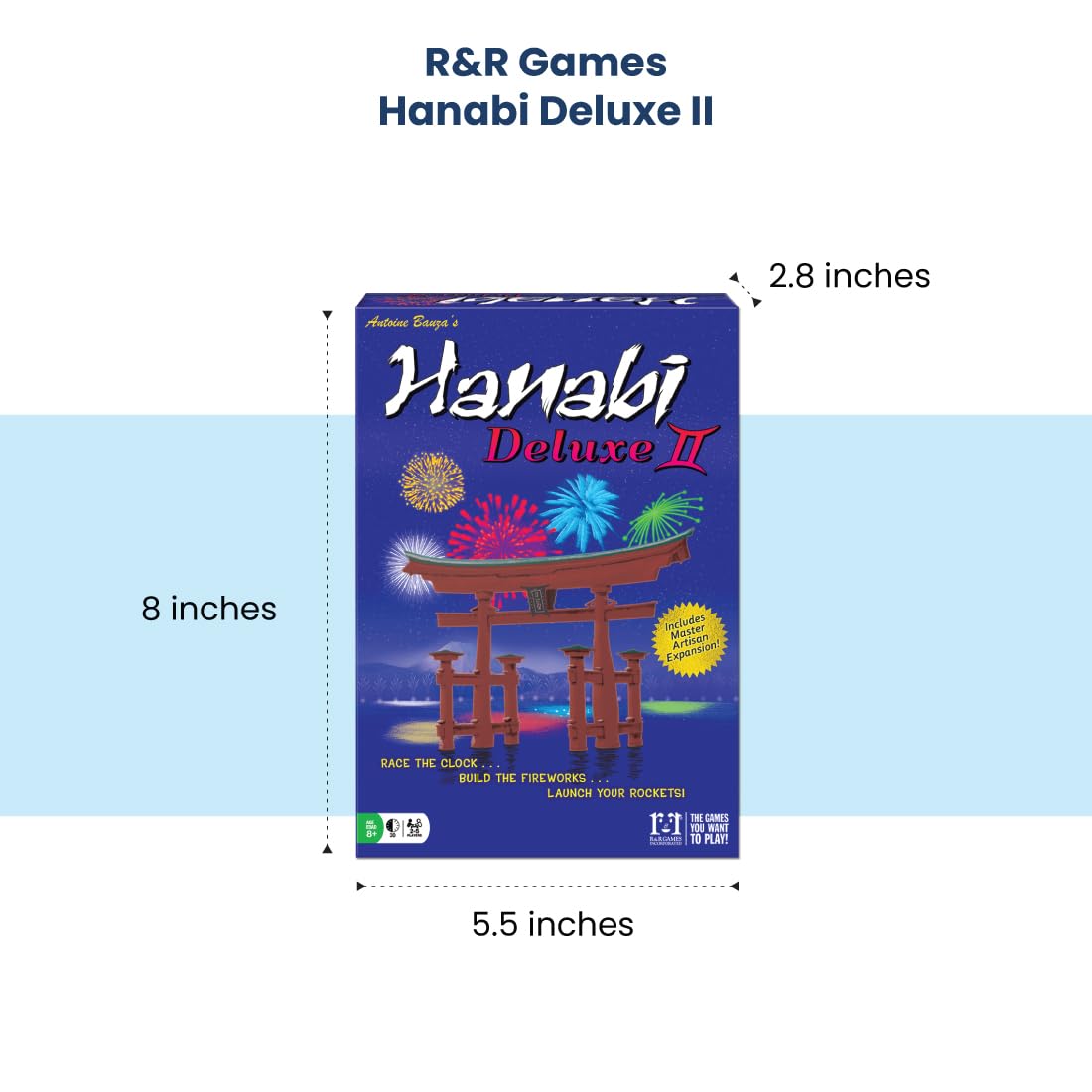 In this cooperative game, players must launch a grand fireworks finale! Trouble is, you can see everyone’s tiles except your own! Working together, you must give and receive vital information to play tiles in the proper launch sequence. Light them all to create a dazzling display and avoid a fizzling Fiasco! Hanabi Deluxe II is similar to the Hanabi Deluxe edition first released in 2013, which features the same game play as the original game, but with the cards being replaced by mAh jhong-style tiles. Hanabi Deluxe II includes six unique tiles that comprise the “master artisan” expansion.