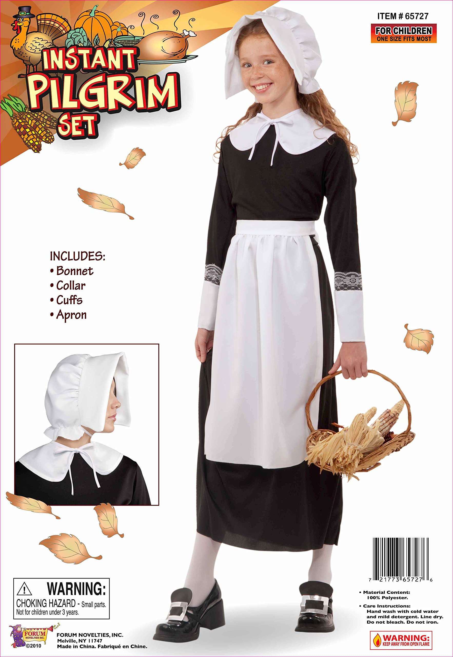 Description Product Description Enhance your child’s dress-up experience with the Instant Pilgrim accessory set, which includes a charming white bonnet, collar, wrist cuffs, and apron for a complete and authentic look. Designed to fit most children, this accessory set makes it simple to create memorable and fun costumes for Thanksgiving gatherings, school pageants, and historical reenactments. Additional costume pieces, such as dresses and shoes, are sold separately, allowing you to mix and match for the perfect ensemble. Since 1950, Rubies Costume Company has been a family-owned business dedicated to crafting high-quality costumes that bring joy to families worldwide. Make your child’s next event special with this beautifully designed Pilgrim accessory set that combines tradition with modern fun. Perfect for fostering creativity and imagination during festive occasions! From the Manufacturer Let your little one celebrate Thanksgiving in costume. Look to Forum Novelties for all your Halloween, Luau, Easter, Mardi Gras, and St. Patrick’s Day supplies.