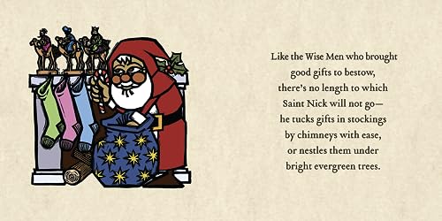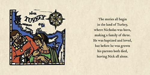 This book teaches children about the historical and religious origins of Saint Nicholas and the tradition of gift-giving.