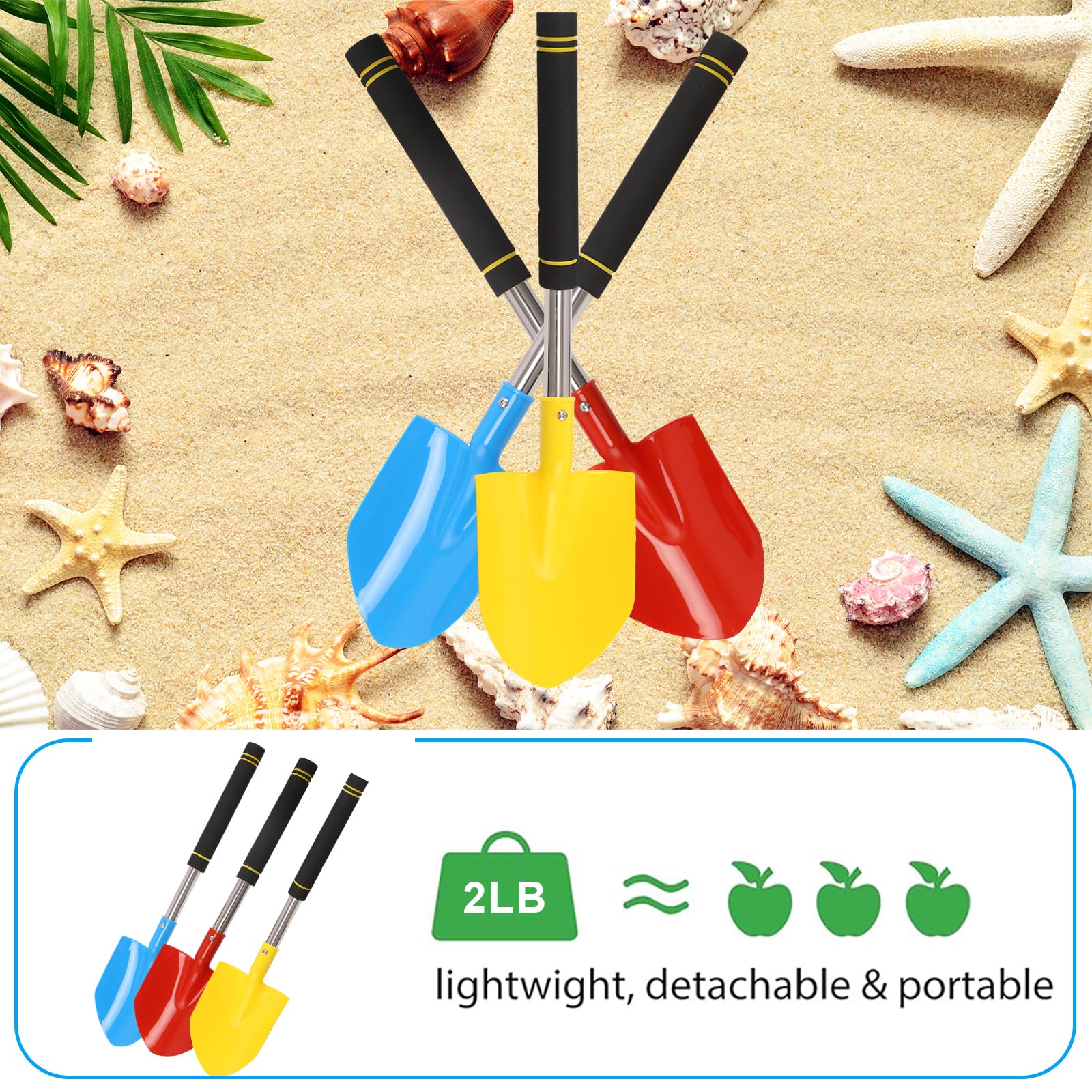 • 4. Widely applicable: You can bring heavy duty beach shovel for kids and play with your kids on the beach, snow, space sand to your heart’s content, so that you and your kids can enhance their emotions.