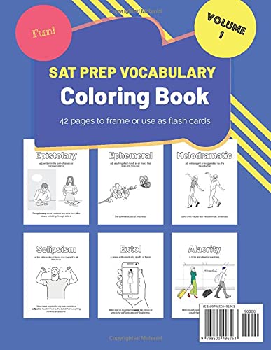 Learn frequently used SAT Words through the power and fun of coloring! This 2021 Edition SAT Coloring Book will help you improve your vocabulary and master words simply by relaxing and unleashing your creativity. This book is a fantastic resource for visual learners. Frame the drawings you like, or use as flash cards to study! A wonderful gift for your high school student to build their skills without the monotony of word lists. This book is also great for adults hoping to expand their vocabulary, and for ESL learners looking to level up their vocabulary.