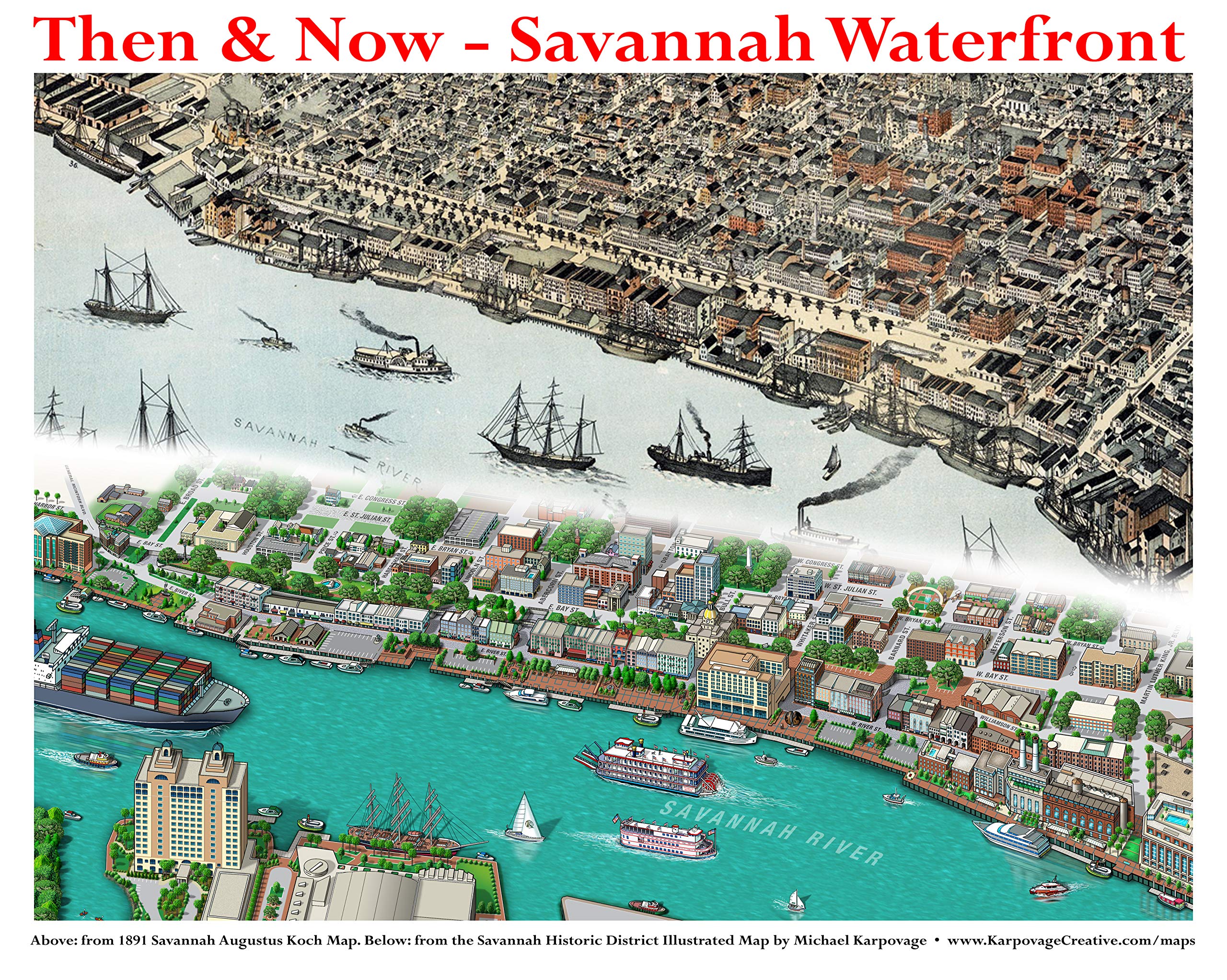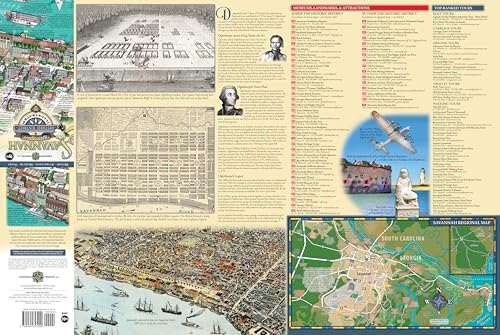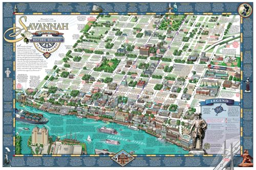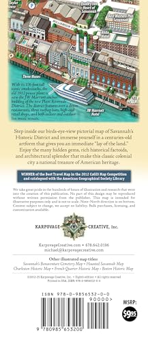 Updated for 2025, in its 8th edition: The Best Illustrated Map of Savannah’s Historic District! With walking shoes on and this birds-eye-view guide map in hand, you’ll feel like you stepped back in time in Savannah’s Historic Landmark District. Beautiful, functional, and informative, this is the only companion piece you’ll need in a city where a historic building, monument or point of interest beckons around every corner. The map features pictorial depictions of popular landmarks so you know what to expect and how to get there. And, we’ve even included the free shuttle and ferry stops to get you around town quicker. History lovers will also appreciate the many factoids explaining the city’s rich, colorful, and sometimes dark history. Our national award-winning Savannah Historic District Illustrated Map comes folded at a convenient 4×9″ size to stow in your pocket or purse and unfolds to 18×27″ to reveal the captivating artwork within. You’ll immediately see a “lay of the land” mirroring the classic maps of Savannah in the 19th century that depict the river (or North) on the bottom. The map is NOT upside down. Note on compass: NORTH is on the bottom because of the historical significance of the riverfront. This area is what draws over 13 million visitors each year and what has turned the city around economically since the late 1970s. Illustrative maps of other cities move compass directions when there is a specific tourism area that needs to be marketed to. There would be no Savannah if not for the riverfront port. It’s where her riches came from dating back to the early 1700s. A vast majority of the incredible 19th century birds-eye-view maps of Savannah also show her in this non-traditional, north on bottom, format. Once you get your orientation adjusted, this map is all you’ll need for wayfinding. On the reverse side, you’ll read of the famous squares and how they originated. Popular museums, landmarks, and attractions are listed, along with their locations on the map. Or you can choose from our top-ranked tour listings and let a professional guide take you on a narrated tour. Plus, we have a regional map showing the best attractions should you wish to venture outside the historic district. There’s no need to navigate from a tiny phone screen, as you miss the history that surrounds you. Get our map or get lost! And don’t settle for the small, flimsy throwaway freebie maps devoid of any history and filled with distracting ads. Our map is advertisement-free, of high quality paper (not laminated), and meant as a true walking tour guide that you can bring back home as a souvenir. Do you like ghost stories, paranormal activity, and strange tales of the macabre? Then you’ll love our HAUNTED SAVANNAH ILLUSTRATED MAP a must-have when touring America’s Most Haunted City. And if you’re planning a visit to the historic outdoor museum of Bonaventure Cemetery in Savannah, do not enter without our BONAVENTURE CEMETERY ILLUSTRATED MAP, or you’re guaranteed to get lost. Happy mapping from Karpovage Creative!