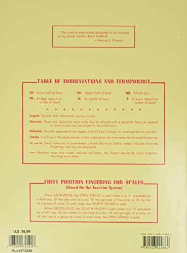 This book provides scale and arpeggio exercises to help beginning and intermediate violin students improve their technique, intonation, and tone quality.