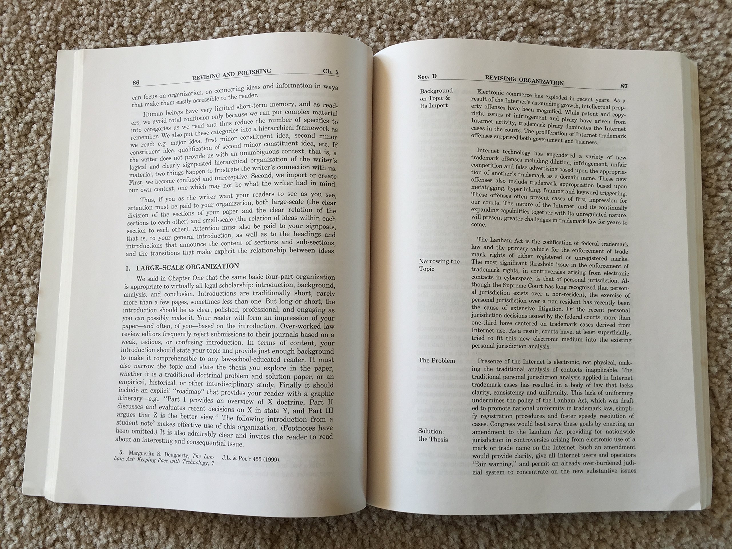 This book teaches law students how to write scholarly papers for seminars, law reviews, and law review competitions. It helps novices and even more-experienced scholars to write papers with a minimum of anxiety. Employing a process theory of writing, the text first describes the enterprise of scholarly writing and then discusses techniques for brainstorming, researching, drafting, and revising for substance and style. There are also chapters on footnote practice, plagiarism, law review editing, and publication. Appendixes provide a sample law review competition paper, answers to in-text exercises, and sample syllabi for scholarly writing courses.