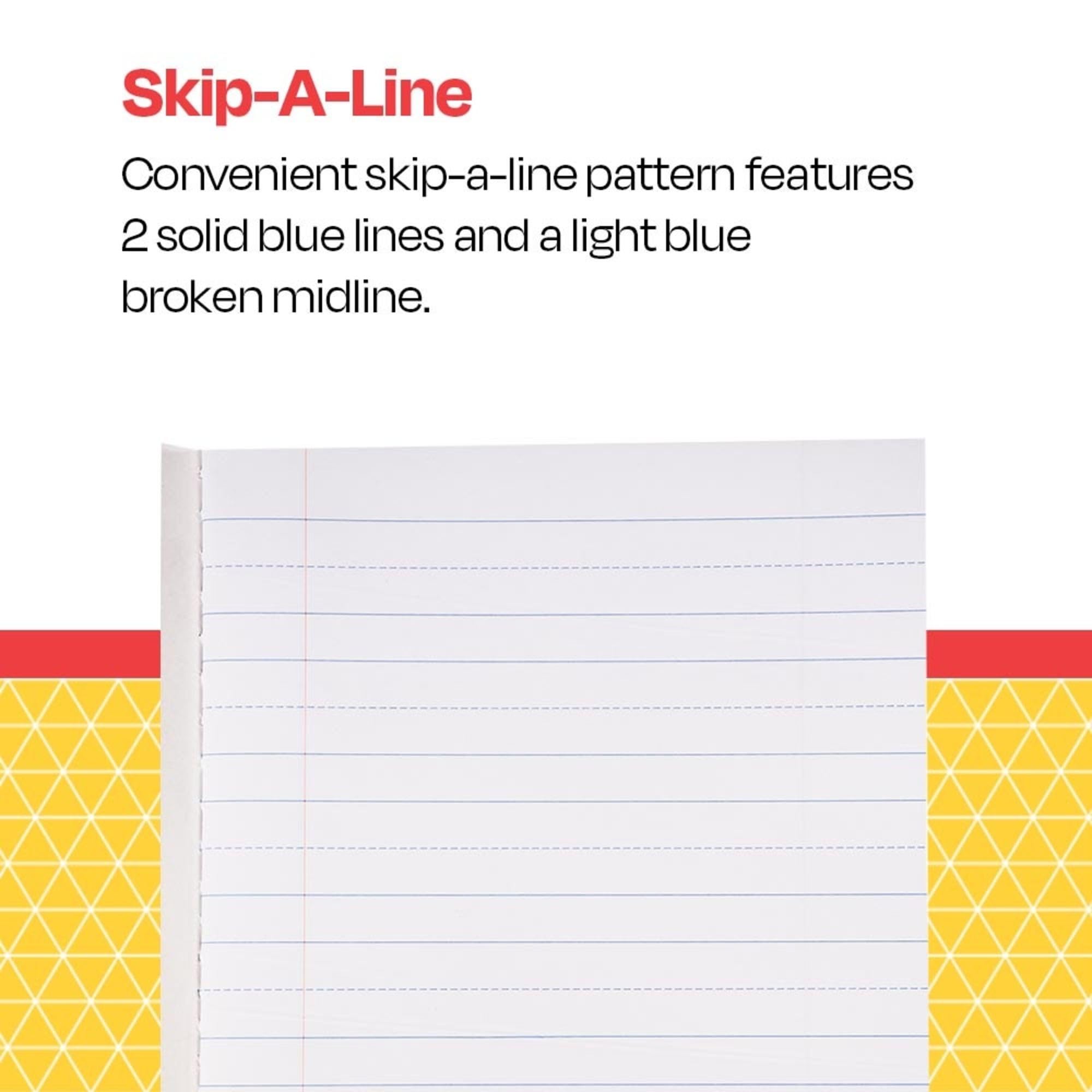 The Grade 1 Composition Book measures 9-3/4 x 7-1/2 inches and has a flexible green marble pattern cover. Books contain 50 total sheets of paper (100 pages for writing) with 1 inch ruling a 1/2 inch red margin and a skip space that offers room for beginning writers. Download School Smart Ruled Paper Guide