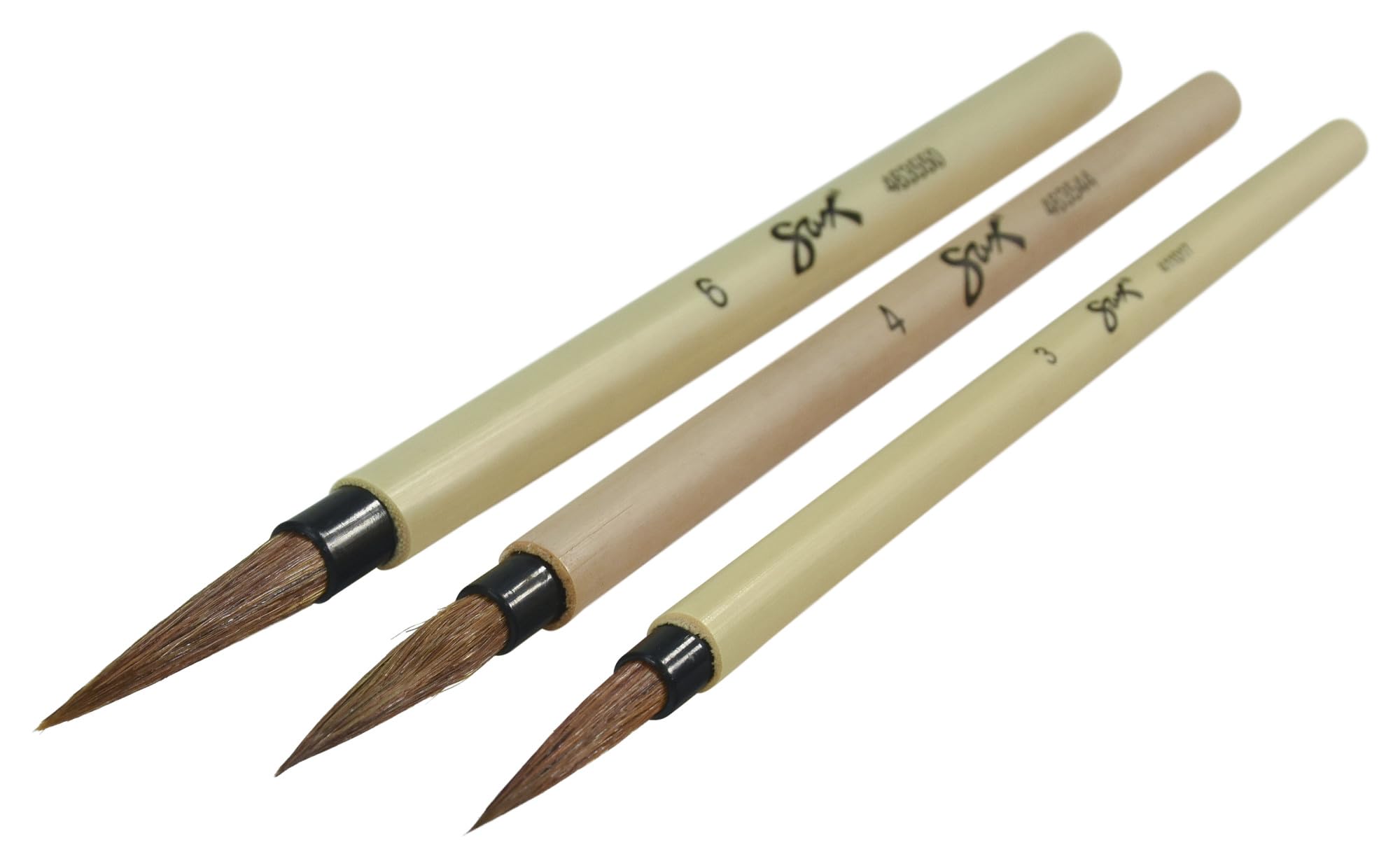 School Specialty Bamboo Watercolor Brush Set can be used for watercolor, calligraphy, ceramics and many other crafts. These brushes are highly responsive and feature fine, soft, resilient brown hair with a tapered point. Set of 3 brushes includes one each of sizes 3, 4 and 6.