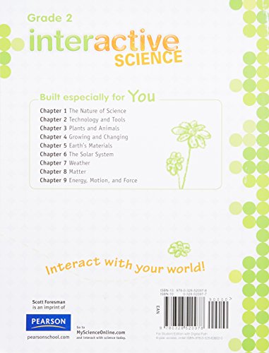 Interactive Science: Grade 2 is a program geared toward children who learn by doing. As such, it includes plenty of lesson plan ideas that will get your child engaged in the learning process. Using a comprehensive workbook with labs and exercises, your child will come to understand Science. Of course, the lessons that lead to such knowledge are sure to be engaging and exciting, helping your child develop a love for the subject. By the end of the curriculum, your child should be able to: Use experimentation to find answers to science-related questions. Gather data throughout an experiment. Discover why plants and animals can only thrive in certain environments. Use drawing and modeling to create a tool that will help solve problems. Your child will accomplish these and other goals by using the materials included in the Interactive Science: Grade 2 program, and through your instruction. Please note that Pearson creates educational materials for all types of learners. For that reason, when creating a program, we ensure that the material will be accessible to as many students as possible. As such, we create many ancillary products that fit specific situations and meet a variety of needs. While there are many components to each of our overall educational programs, some of these ancillaries do not meet the needs of homeschoolers, others do not make sense in a homeschool environment and some require an expensive technological infrastructure to deploy. The homeschool product configurations, while selected from a larger program, are complete curriculum bundles designed to engage your children and help them thrive while being mindful of your budget. It is important to note that at times there will be resources mentioned throughout our curriculum material descriptions that are not included in your package. However this will not hinder your child’s successful completion of the course. Rather, the exclusion of certain materials will make homeschooling more budget-friendly and will ensure your curriculum meets your individual needs. Interactive Science is a next generation K-8 science program featuring an innovative write-in student edition (grades 1-8) that makes learning personal, relevant, and engaging. Your child will get all of the content, interactivity, and practice they need between the covers of a single book. Your child will interact with science through the many labs and hands-on activities throughout the student worktext. Detailed lesson plans make instruction easy In-depth, hands-on activities throughout each lesson engage your child “Got It?” checkpoints ensure your child understands the material Understanding By Design model leads students to a deeper understanding of science concepts Each homeschool bundle includes a Parent Guide, Write-In Student Edition, and online Teacher’s Edition eText. Student online access is not available at this time. **Please note the Teacher’s Edition eText is accessible for one full year, online only. Individual pages cannot be printed.** Thank you for your interest in Pearson Homeschool. Our product packages were designed with the homeschool community in mind. Pearson creates education materials for all types of learners. When creating a program, we ensure that the material will be accessible to as many students as possible and as such, we create many ancillary products to fit specific situations to meet a variety of needs. While there are many components to each of our overall educational programs, some of these ancillaries do not meet the needs of homeschoolers, others do not make sense in a homeschool environment and some require an expensive technological infrastructure to deploy. The homeschool product configurations, while selected from a larger program, are complete curriculum bundles designed for your children to be engaged and to thrive, while being mindful of your budget. It is important to note that at times there will be resources mentioned throughout your materials that are not included in your package, however this will not hinder your child’s successful completion of the course.
