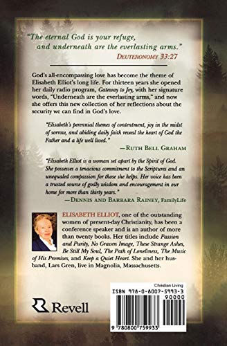 “Elisabeth Elliot is a woman set apart by the Spirit of God. Her voice has been a trusted source of godly wisdom and encouragement in our home for more than thirty years.”–Dennis and Barbara Rainey, Family Life In a life filled with uncertainty, Elisabeth Elliot clings to the God who never leaves her side. Through the deaths of two husbands, a life of travel and danger, and the raising of her daughter as a single parent, God provided Elliot with a security that could not have come from relying on the world. Readers have a rich opportunity to join this former missionary as she recounts some of the amazing events of her life and her reliance on God.