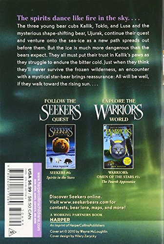 The spirits dance like fire in the sky. . . . The three cubs–Kallik, Toklo, and Lusa–along with their shape-shifting companion, Ujurak, stand on the edge of the sea-ice under the blazing Northern Lights. The land has come to an end, but the bears’ journey is far from over. Now they must put their trust in Kallik’s paws, as she feels the ice pulling her out toward the ocean. Life on the ice is more difficult than the bears imagined. While Kallik struggles to remember her polar bear roots, Toklo bristles in the unfamiliar territory and Lusa gets weaker by the day; black and brown bears don’t belong on the ice. Meanwhile, Ujurak learns firsthand what lurks beneath the whorls and bubbles of the ice, and what he discovers will change everything. Just when it seems like they’ll never survive in the frozen wilderness, a mystical encounter with a bear spirit assures them that all will be well. But this strange vision leads to even more questions, and ultimately it might tear the bears apart–this time for good–as the next steps of their journey come into focus.