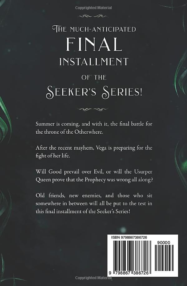 The much-anticipated final chapter of the Seeker’s Series! Summer is coming, and with it, the final battle for the throne of the Otherwhere. After the recent mayhem, Vega is preparing for the fight of her life. Will Good prevail over Evil, or will the Usurper Queen prove that the Prophecy was wrong all along? Old friends, new enemies, and those who sit somewhere in between will all be put to the test in this final installment of the Seeker’s Series!
