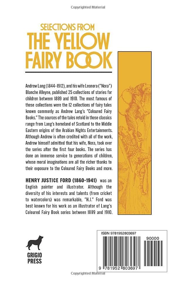 Selections from the Yellow Fairy Book contains the following stories: The Flying Ship; Big Klaus, Little Klaus; Prince Ring; The Blue Mountains; The Tinder Box; and Thumbelina. In addition, the stories are illustrated with 21 black and white drawings from H.J. Ford. Andrew Lang (1844-1912), and his wife Leonora (“Nora”) Blanche Alleyne, published 25 collections of stories for children between 1889 and 1910. The most famous of these collections were the 12 collections of fairy tales known commonly as Andrew Lang’s “Coloured Fairy Books.” The sources of the tales retold in these classics range from Lang’s homeland of Scotland to the Middle Eastern origins of the Arabian Nights Entertainments. Although Andrew is often credited with collecting all of the tales and adapting them for children, Andrew himself admitted that his wife, Nora, took over the series after the first four books. The series has done an immense service to generations of children, whose moral imaginations are all the richer thanks to their exposure to the Coloured Fairy Books and more. Henry Justice Ford (1860-1941) was an English painter and illustrator. Although the diversity of his interests and talents (from cricket to watercolors) was remarkable, “H.J.” Ford was best known for his work as an illustrator of Lang’s Coloured Fairy Book series between 1889 and 1910.