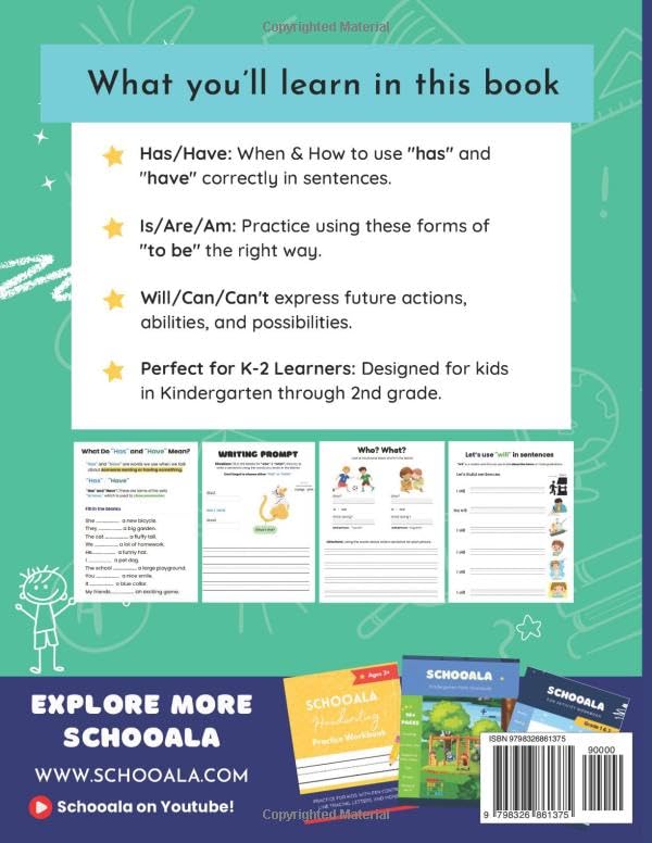 Unlock your child’s potential inconversational skills with “Sentence Builders for K-2: Mastering Has/Have, Is/Are/Am, and Will/Can/Can’t.” This engaging workbook is specially designed for young learners in Kindergarten through 2nd grade, making grammar and sentence building practice fun and effective. #Sentencebuilders #sentencebuilding #workbooksforkids #kidsworkbooks #workbooksforreading This workbook covers: Has/Have: Helping kids learn when to use each form correctly in sentences. Is/Are/Am: Teaching the correct usage of these forms of ‘to be’. Will/Can/Can’t: Introducing future tense and modal verbs for expressing ability and possibility. Give your child a head start in mastering grammar with “Sentence Builders for K-2.” Perfect for parents, teachers, and homeschooling families, this workbook is a valuable resource for developing strong grammar skills in young learners. #homeschool #homeschoolkids #homeschoolworkbooks #firstgradeworkbooks #kindergartenworkbooks #2ndgradeworkbooks