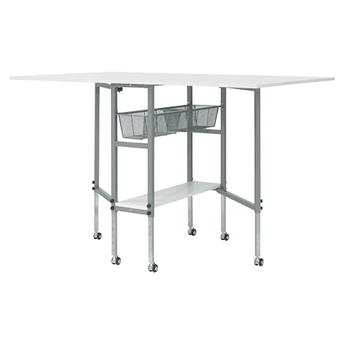 Sew Ready Hobby and Cutting Table – 58.75″ W x 36.5″ D White Arts and Crafts Table with 2 Mesh Storage Drawers, Silver/White