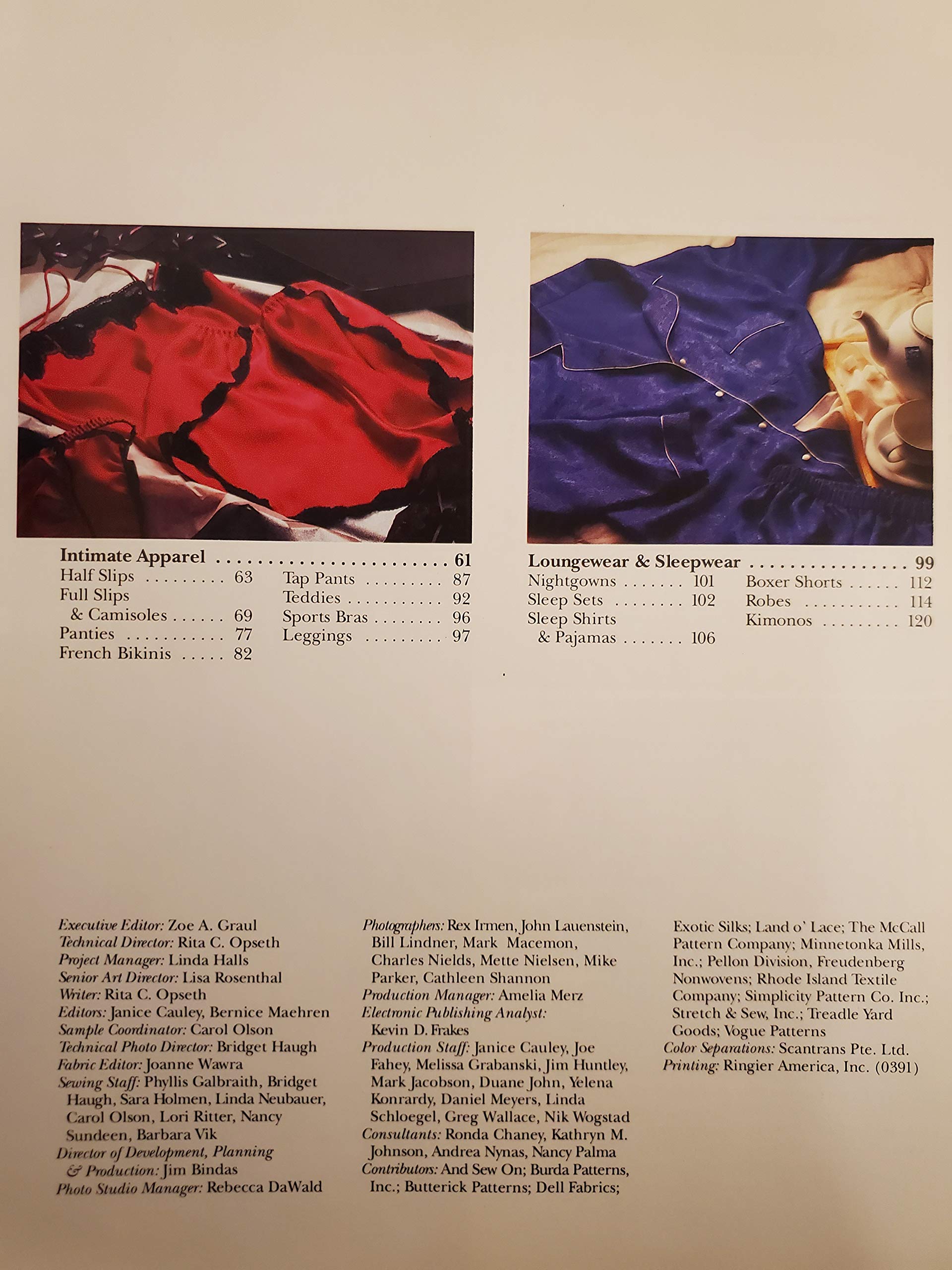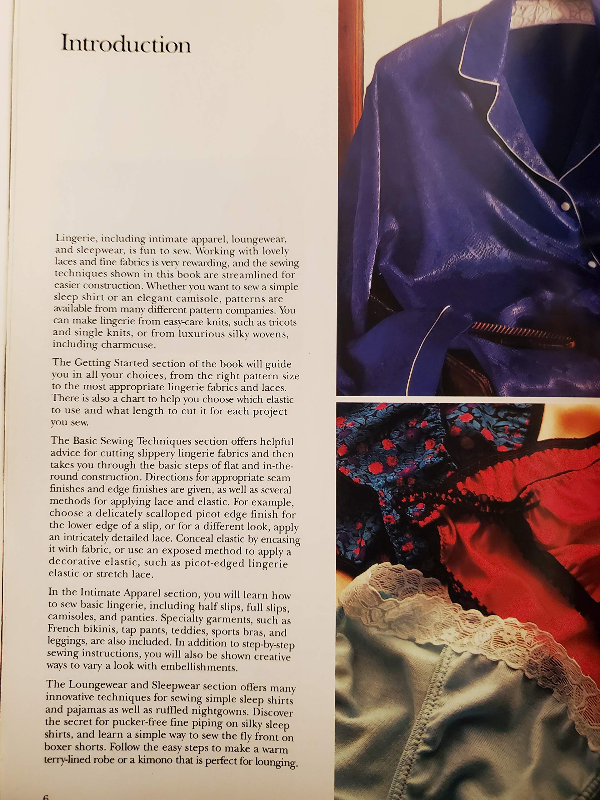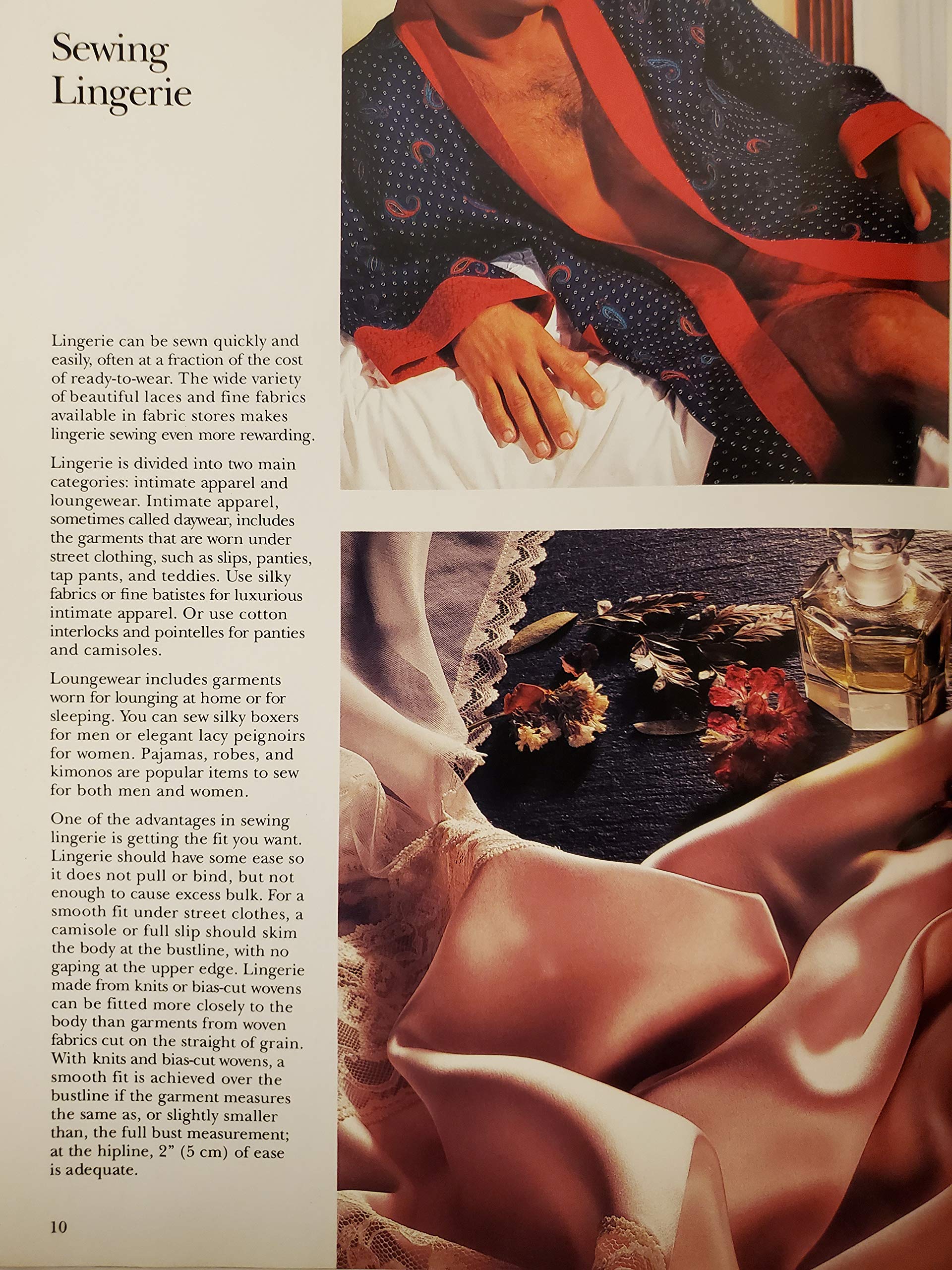 This is a Singer Sewing Reference Library book: Sewing Lingerie. It is your step-by-step guide for intimate apparel, loungewear, and sleeper. Slips, panties, tap pants, teddies, and nightgowns are just a few of the garments featured. You will learn the latest techniques for: handling lingerie fabrics, applying lace edging, inserts, and appliques, sewing garment details, such a mitered slit openings for slips, sewing projects without a pattern, and embellishing lingerie for that finishing touch.