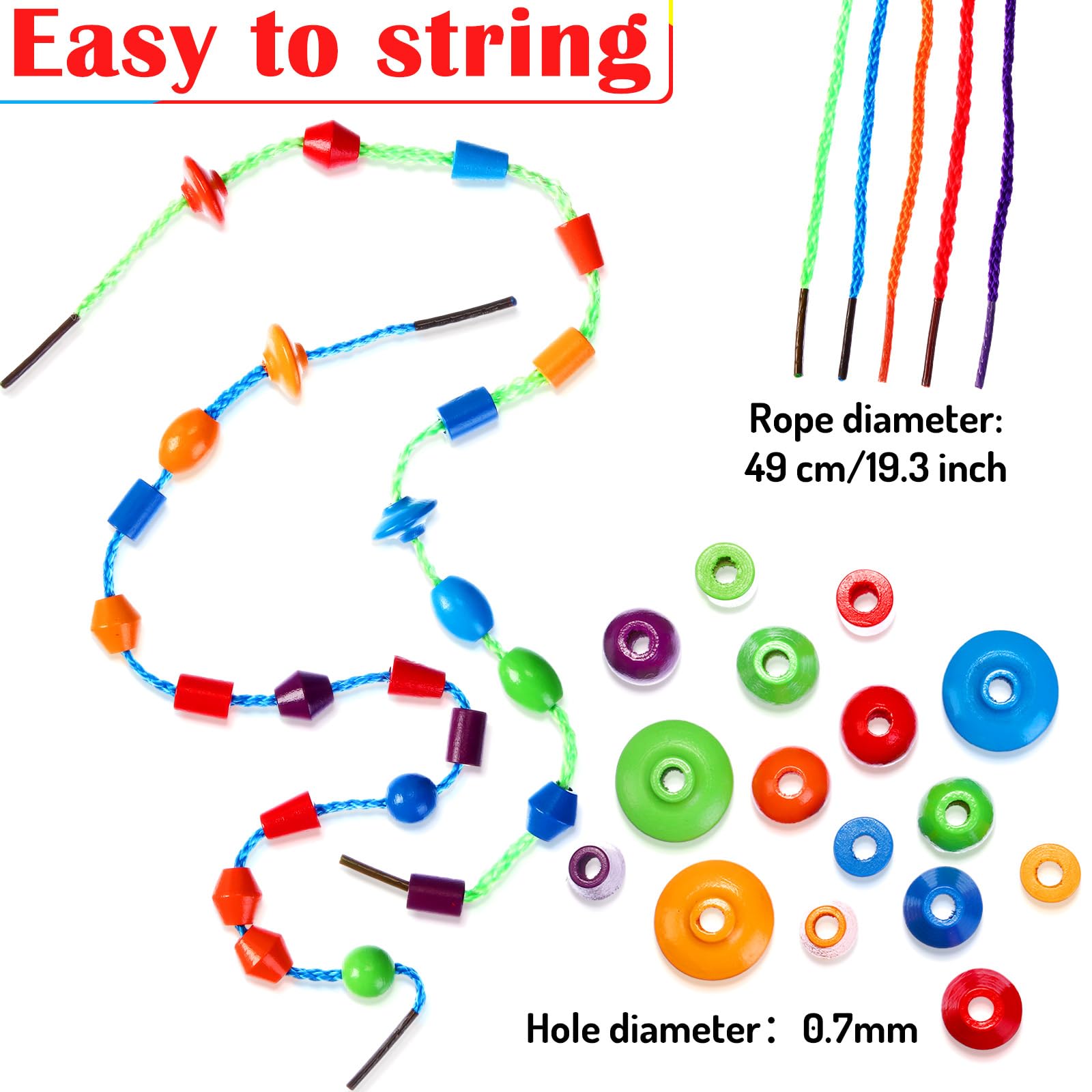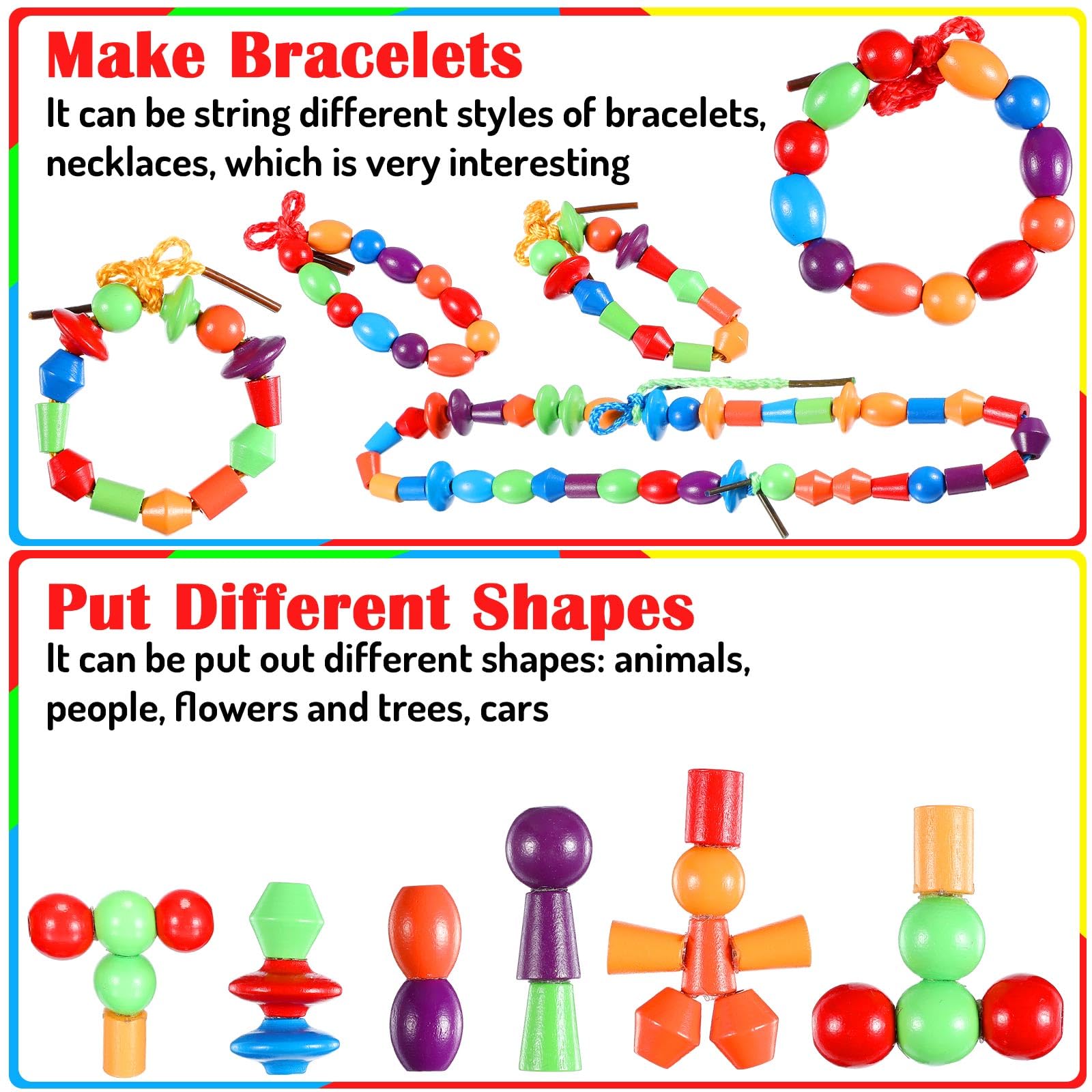 - 6 Shapes Beads: our kids beads in 6 distinct shapes which help kids to recognize shapes; The proper size beads that are easy for little hands to grasp