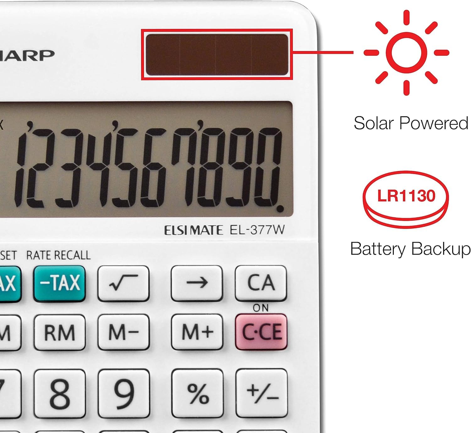 Ten-digit professional large pocket calculator. Functions include: automatic tax keys, percent key, square root key, backspace key and four-key independent memory. Operates on twin power. Power Source(s): Battery; Solar; Display Notation: Basic; Number of Display Digits: 10; Display Characters x Display Lines: 10 x 1.