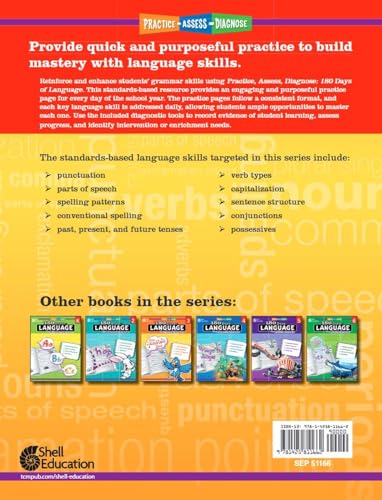 180 Days of Language is a fun and effective daily practice workbook designed to help students improve their grammar skills. This easy-to-use first grade workbook is great for at-home learning or in the classroom. The engaging standards-based activities cover grade-level skills with easy to follow instructions and an answer key to quickly assess student understanding. Students will practice punctuation, capitalization, and spelling with daily activity pages. Watch as students improve their grammar and writing skills with these quick independent learning activities.Parents appreciate the teacher-approved activity books that keep their child engaged and learning. Great for homeschooling, to reinforce learning at school, or prevent learning loss over summer.Teachers rely on the daily practice workbooks to save them valuable time. The ready to implement activities are perfect for daily morning review or homework. The activities can also be used for intervention skill building to address learning gaps.