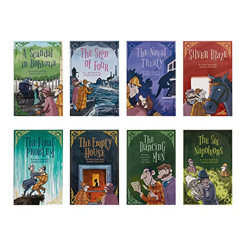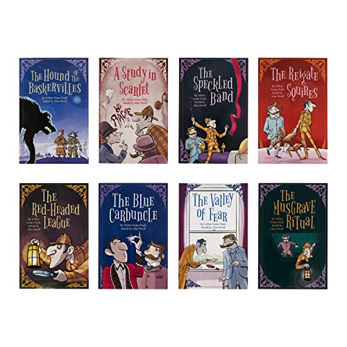 This delightful 16-book box-set presents Sherlock Holmes’ classic cases, retold and illustrated to be accessible for young readers. Join Sir Arthur Conan Doyle’s world-famous detective Sherlock Holmes and his ever-loyal sidekick Dr. Watson as they try crack a series of baffling cases using cool logic and deduction. Can our brilliant hero solve these mysteries and more before disaster strikes? Told with wit and panache, these tales have been adapted by award-winning children’s fiction author Alex Woolf with lively illustrations throughout. The cleverly reworked text retains many of the original turns of phrase, while simplifying and clarifying the language and plots to make stories accessible to children. These tales are perfect for young fans of mystery and detective fiction and are a wonderful introduction to classic literature for readers aged 6+. Contains: * The Blue Carbuncle * The Dancing Men * The Empty House * The Final Problem * The Hound of the Baskervilles * The Musgrave Ritual * The Naval Treaty * The Red Headed League * The Reigate Squires * A Scandal in Bohemia * The Sign of Four * Silver Blaze * The Six Napoleons * The Speckled Band * A Study in Scarlet * The Valley of Fear ABOUT THE SERIES: Young readers can discover best-loved works of classic literature with the Arcturus Retold Classics series. These illustrated, easy-to-read tales are presented in delightful box sets, perfect for any child’s library.
