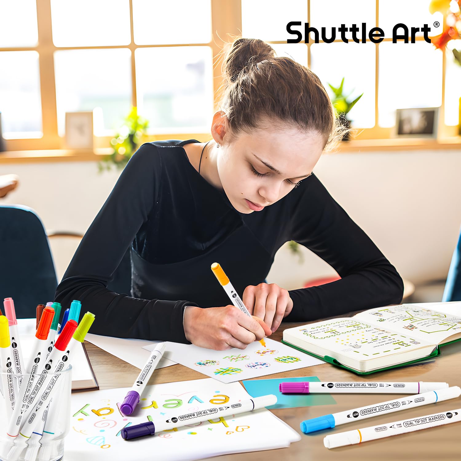 - QUICKLY DRY & WRITE SMOOTHLY: The water-based pigment ink is durable for smooth, clear writing and quickly dry without ruin the pages. And it also allows you to hold comfortable. Both kids and adults can easy use and have fun with dual tip dot markers
